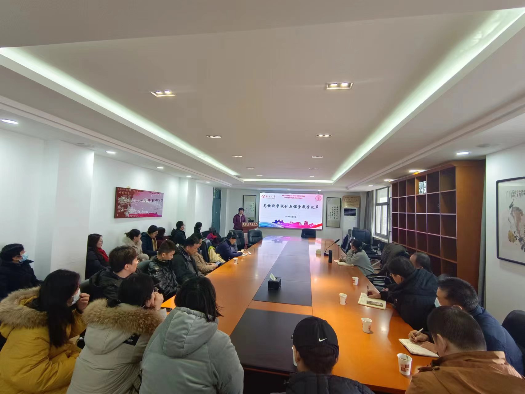 The main topic of Professor Cai Cheng's lecture is "Teaching Design and Classroom Teaching Reform in Universities". During the activity, Teacher Cai gave a detailed introduction to the connotation, main characteristics, theoretical basis, and main links of instructional design. In response to the problems that arise in undergraduate classrooms, he proposed suggestions for building high-quality university classrooms.