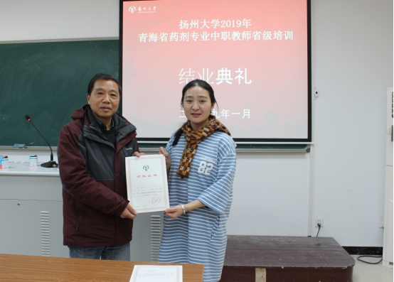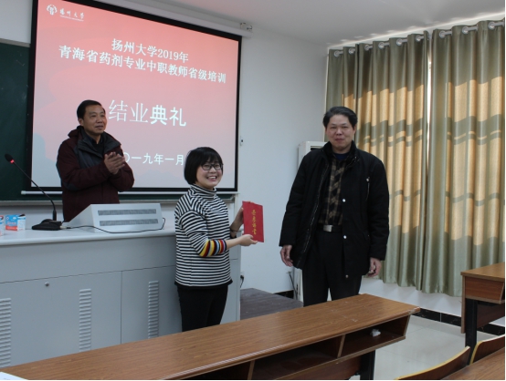 1月22日下午,2019年青海省职业院校药剂专业教师培训班在我院圆满结束。本期培训班是受青海省教育厅委托举办,参加培训学员共10名,分别来自西宁市湟中职业技术学校、果洛藏族自治州职业技术学校。本次培训根据中职骨干教师培训目标,采用模块化课程设置,应用理论授课、互动研讨、教学观摩、医院或药企实习、药学实验操作示教、现场参观等理论实践一体化方式。开设的培训模块有师德素养、教育方法与能力、教学设计与课改能力、教学模式改革、现代教育技术应用、专业教学法、专业理论与实践、科研能力等。具体培训讲座内容主要有:教师职业道德与教育教学道德及教师礼仪、国家职业教育改革与发展及国外职业教育模式借鉴、教育技术概述、教学设计、教案撰写、说课概念及基本要素、教学课件制作的方法与技巧、现代教学媒体的选择与应用、PBL教学教学法在药剂教学中的应用、药剂专业主干课程的讲授方法与技巧、现代药剂学研究进展及分子生物学技术在药学研究的应用、临床药师的培养与技术应用、临床合理用药进展、药物制剂新工艺、新辅料及制药机械与药品包装、药剂专业教学改革研讨及教学改革课题的立项设计、药学科研的选题、科研设计及论文撰写等,并组织学员进行药剂学课程的理论、实验示范课观摩交流,到江苏省苏北人民医院(三甲综合医院)、国药控股扬州有限公司现场参观、实践体验。
