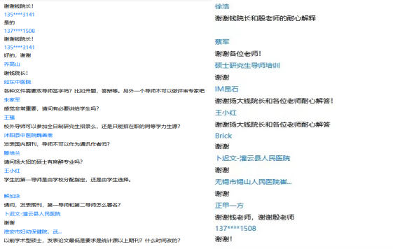 答疑过程主要由钱莉副院长和殷现元副主任负责,导师们对于同等学力研究生的培养持有较认真的态度,两场培训会的答疑环节约1个小时之久。