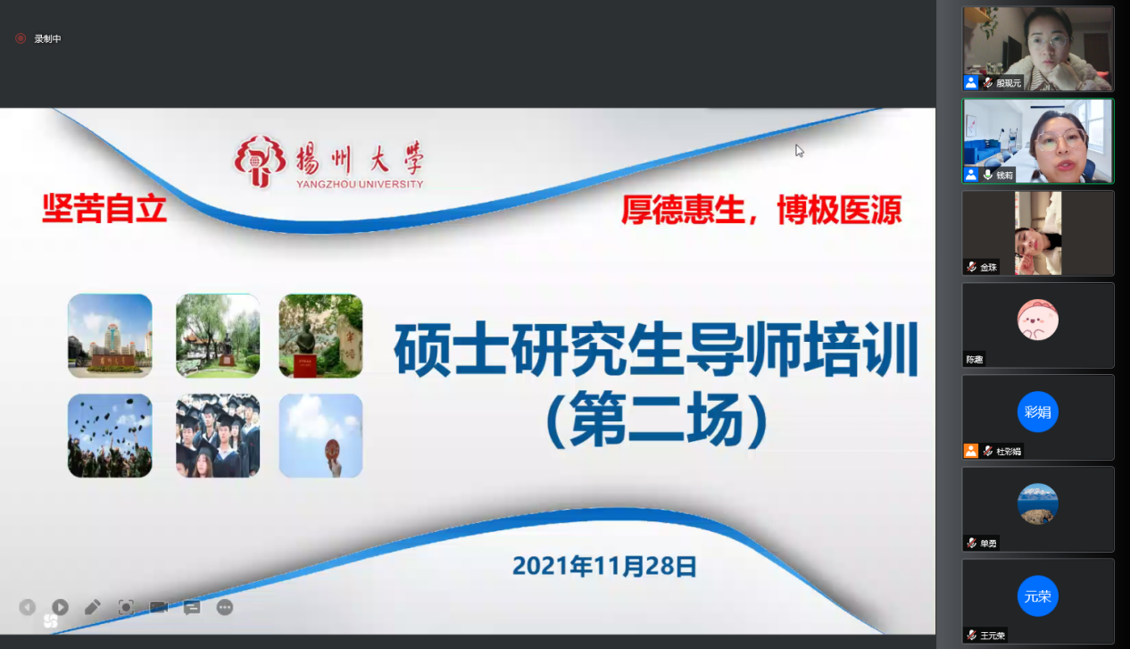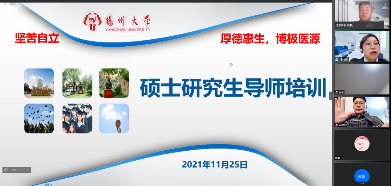 通过此次导师培训会,导师们充分了解了扬州大学医学院同等学力学生培养的相关政策、培养环节等,为今后同等学力硕士研究生的高质量培养奠定了较好的基础。