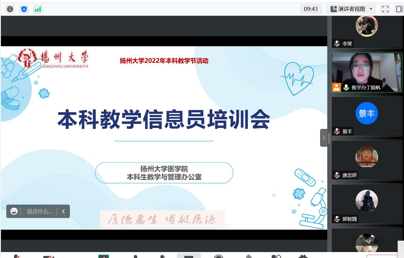丁老师围绕“本科教学知多少”、“培养方案知多少”、“教务工作知多少”三个方面详细介绍了我院本科教学基本情况、教学运行机制、本科教学信息员(学习委员)的职责,并对目前执行的人才培养方案进行了详细解读,最后例举了日常工作中常见的教务管理工作流程。