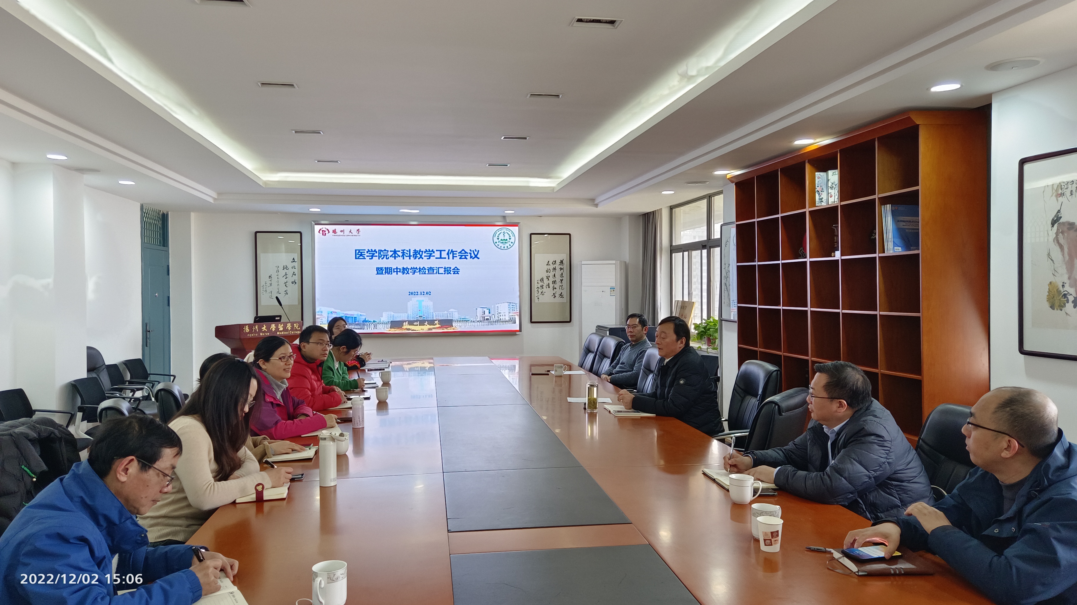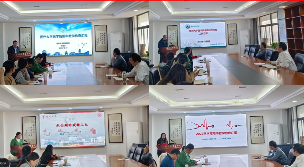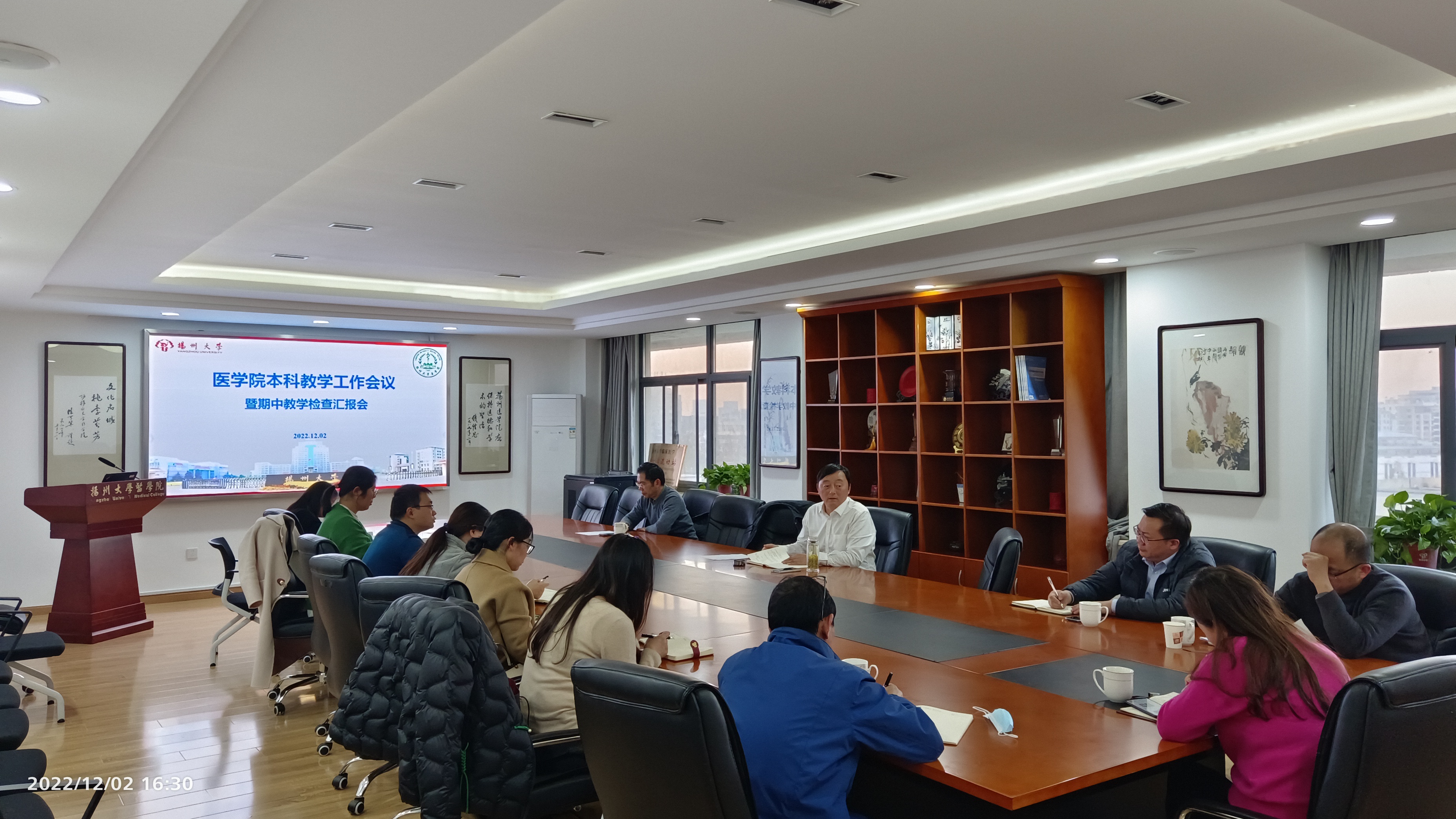 12月2日下午,我院召开本科教学工作会议暨2022-2023学年秋学期期中教学检查汇报会。本次会议由学院副院长李伟主持,学院各系领导、附院、附属苏北医院教务处领导及学院学工办、教学办老师参加了本次会议。
