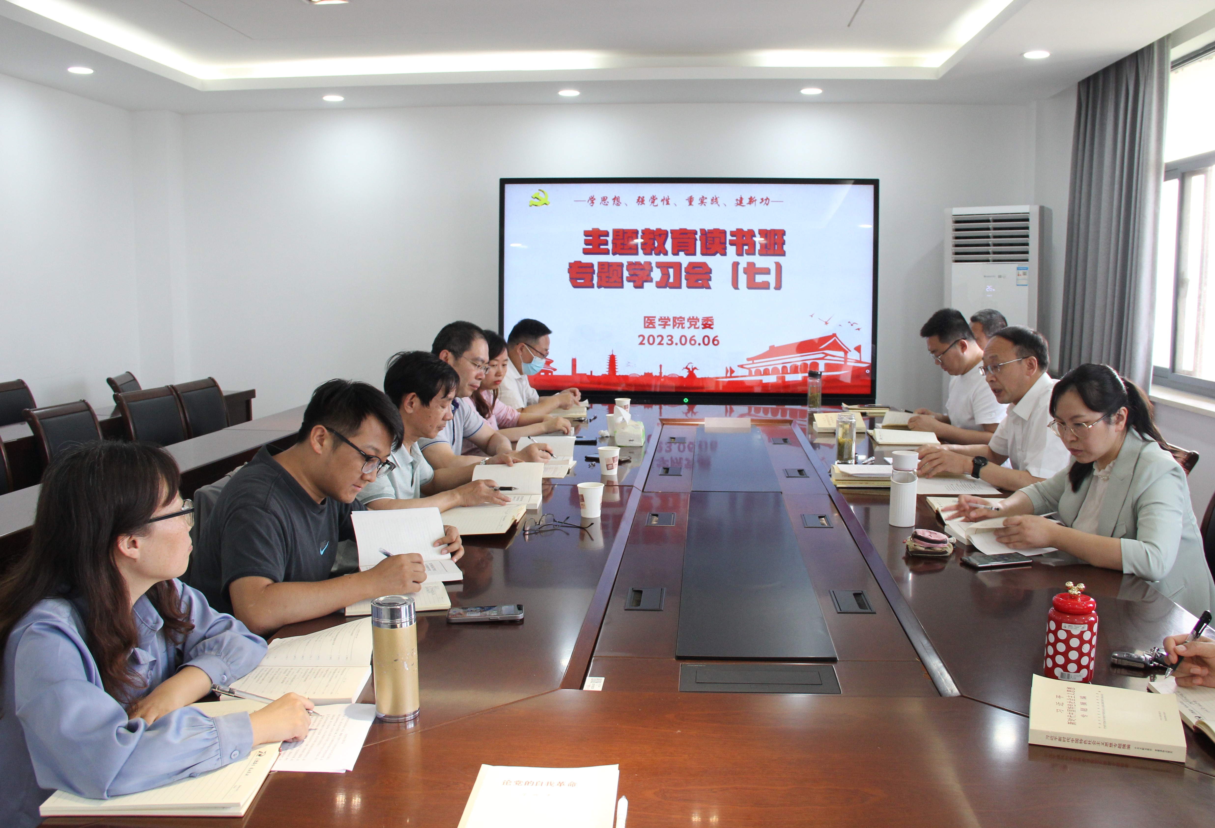 2023年6月6日下午,医学院党委理论学习中心组召开主题教育读书班第七次集体学习会,集中学习《论党的自我革命》一书的主要内容。