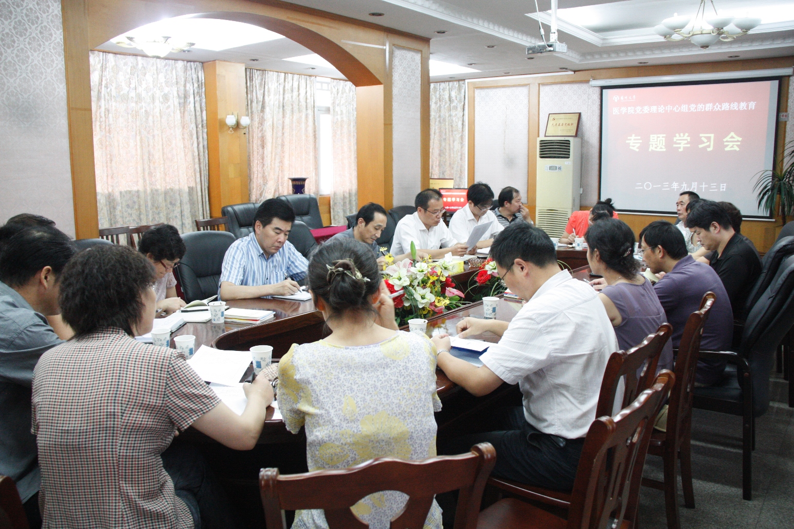 根据校党委的统一部署,9月13日下午,我院党委理论学习中心组成员在院行政楼四楼会议室进行了党的群众路线教育实践活动专题学习,院党委委员、各系部党支部书记、学生党支部书记参加了学习。会议由院党委陈轶群副书记主持。