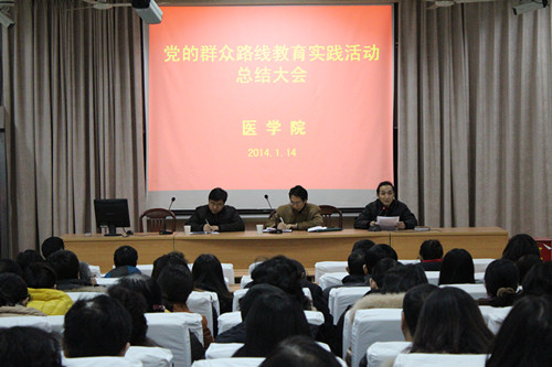 王炜在总结报告中指出,党的群众路线教育实践活动开展以来,院党委精心组织,周密部署,深入学习贯彻党的十八大、十八届三中全会和习近平总书记一系列重要讲话精神,严格执行校党委的活动部署和工作要求,认真开展好实践教育活动,取得了较为明显的活动成效。一是结合学院实际,强化思想共识,努力使“向吴登云学习、做吴登云式的医务工作者”成为全院上下的思想共识和目标追求;二是集聚群众智慧,推进学院改革,在系部的设置、学生管理体制的调整、学科群的存废、大型仪器设备的管理、期中教学检查的组织等问题上,师生们的智慧,影响着决策的形成,推进着改革的进程;三是加强制度引领,保障民主参与,学院出台的“教授委员会章程”等一系列制度,更好地保障了广大师生员工在学院事务中的知情权、参与权、表达权和监督权;四是抓住重点环节,回应师生关切,对于直属附属医院建设、师资队伍建设、人才培养方案等制约学院发展的重点与难点问题,院党委不加回避,直面回应,积极寻求解决之策;五是贴近师生诉求,提升服务意识,坚持把师生的满意度作为工作的评判标准,努力为师生做好事、办实事;六是关心师生利益,彰显主体价值,全力实现好、维护好、发展好师生的利益,彰显他们的主体地位,展现他们的自身价值。
