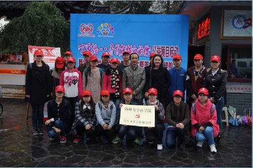 11月8日上午,医学院 “党员义工志愿服务站”和旌忠寺社区公益活动“百里挑一,寻找熊猫血的你”两个活动的启动仪式在广陵区文明驿站服务中心举行。我院党委书记王炜、团委书记王芬,旌忠寺社区主任张雪松及扬州市民政局、文明办、中心血站相关领导参加了启动仪式。