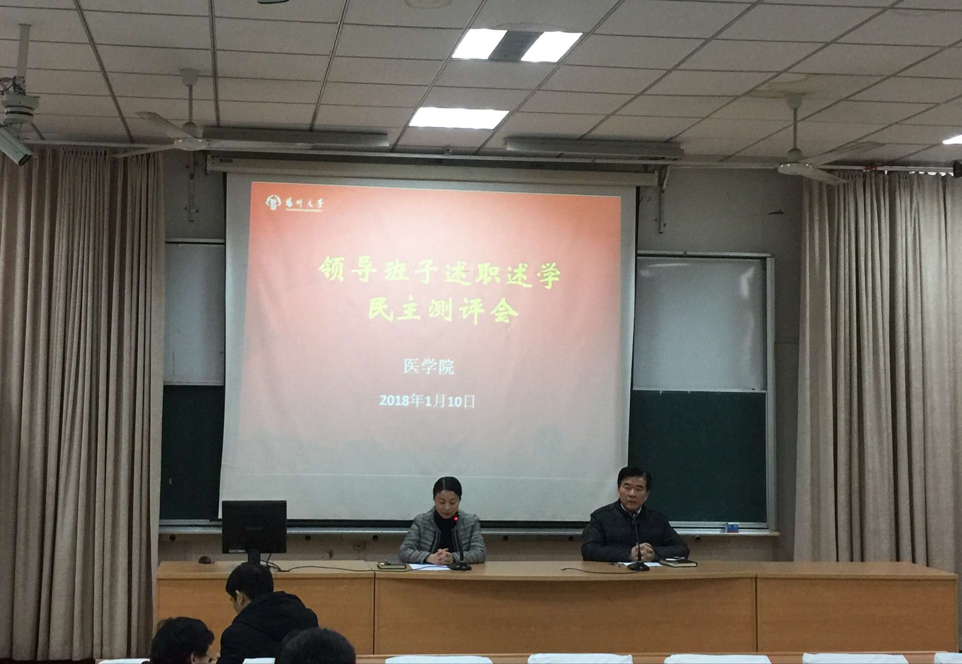 1月10日下午,学院召开教职工大会,听取院领导班子成员述职述学述廉,并对班子成员进行民主测评。院党委书记徐蕾主持会议,全体教职工及部分学生代表参加。