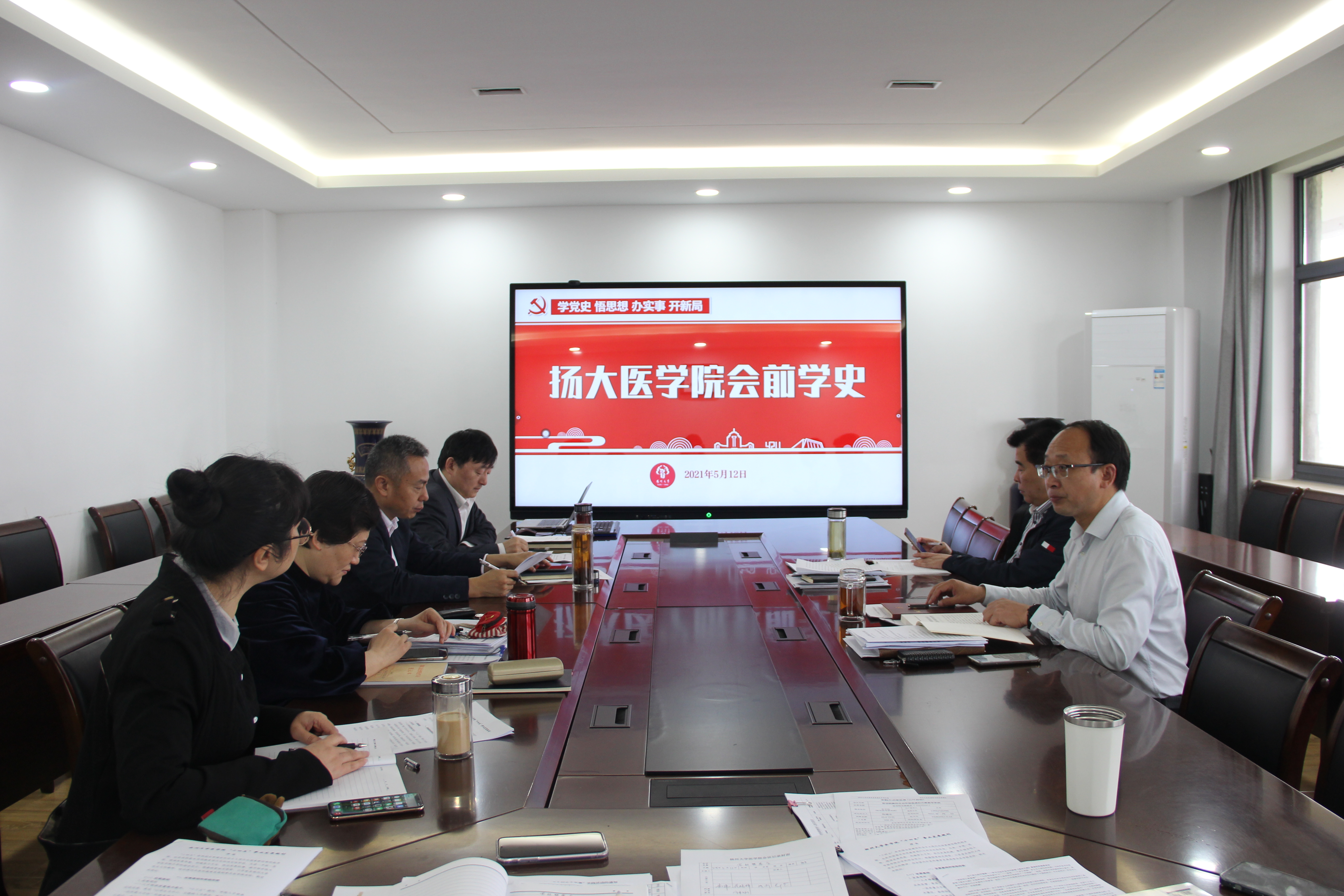 2021年5月12日,医学院党政领导班子在学院党委会会议前进行会前学史活动。此次会前学史由党委书记王庆林领学,全体院领导全文学习了习近平在参观《复兴之路》展览时的讲话原文,大家一致认为总书记的讲话既朴素又深刻,既平实亲切又充满力量。学习中,全体院领导班子结合学院“十四五”规划修改、完善,回首过去、审视现在、展望未来,大家要以党史学习教育为契机,进一步把全院师生的智慧和力量凝聚起来,脚踏实地、埋头苦干,求真务实、真抓实干,自觉把个人的前途命运融入到大局之中,奋力开创医学院发展的崭新局面。