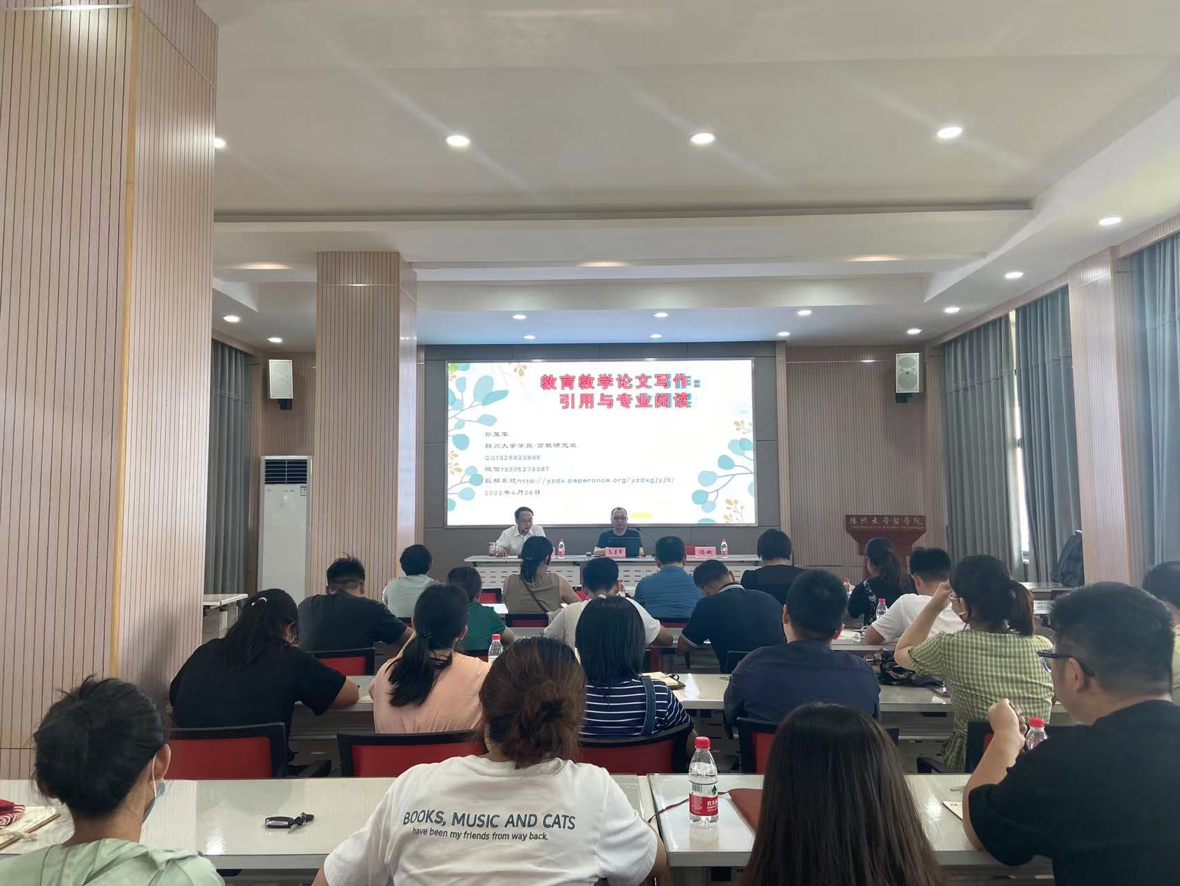 为进一步提高学院党务工作人员和机关工作人员的写作能力和科研水平,2022年6月28日下午,院党委邀请扬州大学学报(高教研究版)常务副主编、编审孙显军教授做客党支部书记培训班暨院机关工作人员能力提升班,为总支书记、支部书记和机关工作人员作《教育教学论文写作:引用与专业阅读》专题讲座。