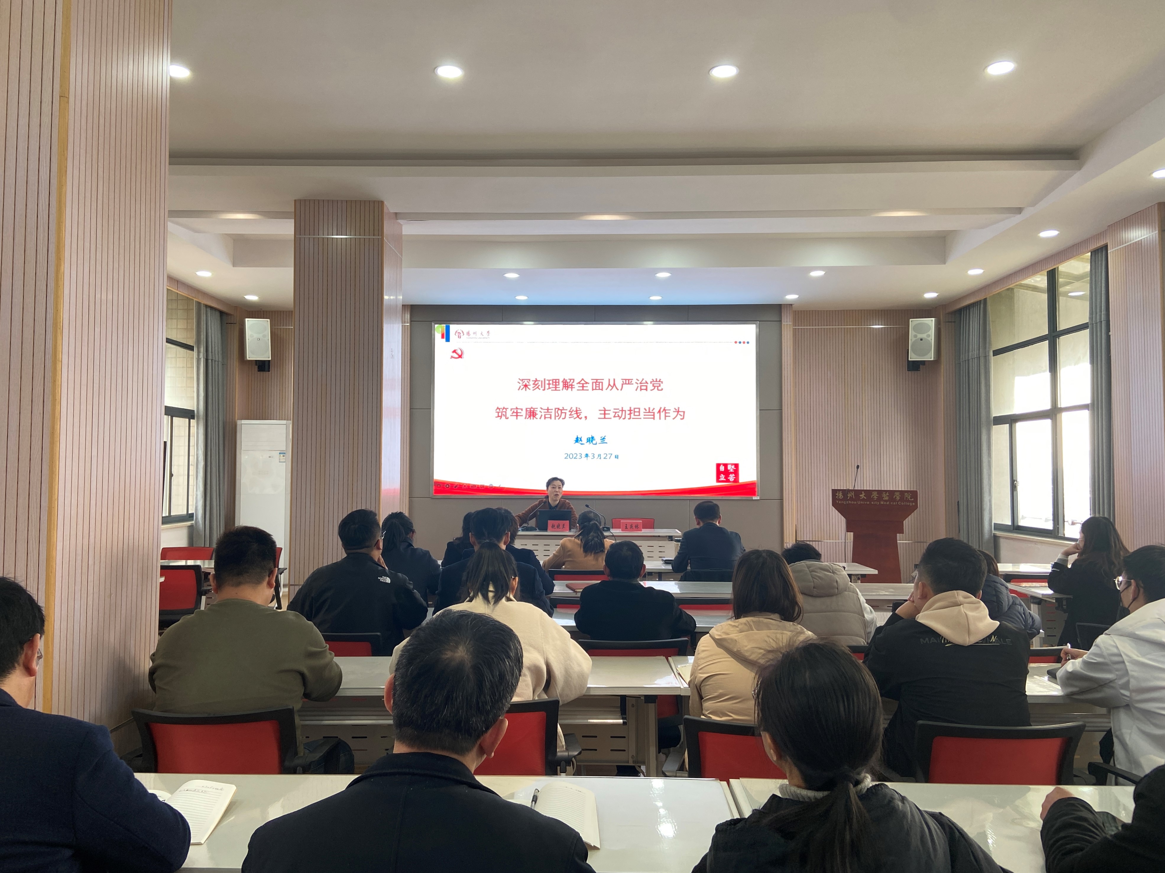 2023年3月28下午,校纪委副书记赵晓兰为学院分党校党支部书记培训班暨院机关工作人员能力提升班做党风廉政建设专题讲座。