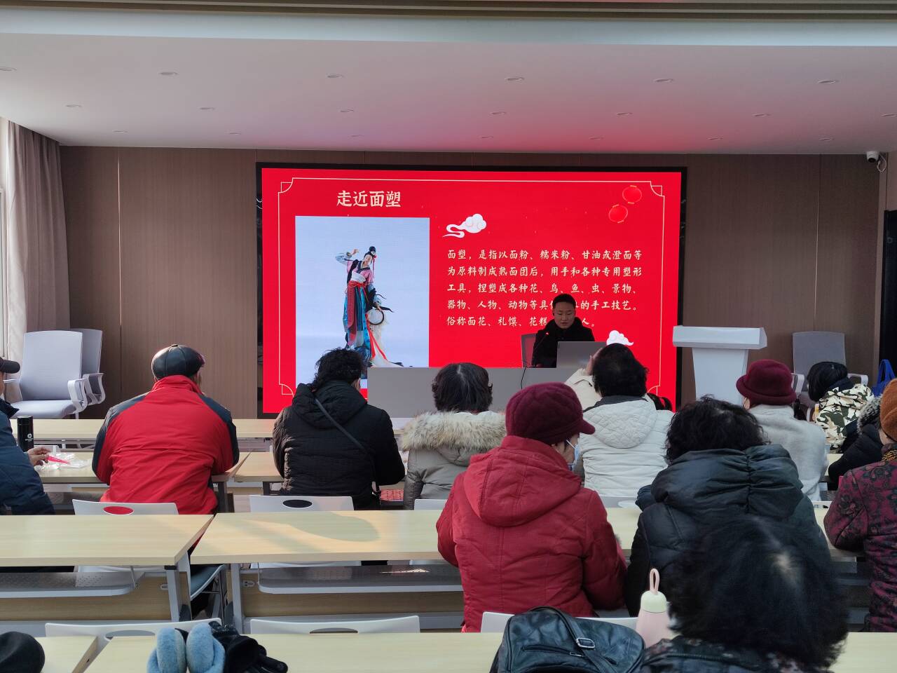 志愿者先为居民们进行了高血压知识的普及和宣讲,并开展了高血压相关的健康指导。之后,同学们与社区居民一起开展了以“喜迎元旦佳节,体验非遗面塑”为主题的面塑活动。面塑是中国民间传统艺术之一,具有悠久的历史。支部党员向居民介绍面塑的历史、技艺特点等内容,并与居民一起制作出了精美的面塑作品