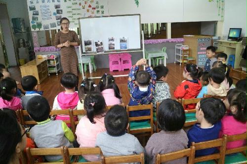 在活动正式开始之前,王金于首先向小朋友们展示了一组80年前与现今扬州的对比图片,包括文昌阁、扬州大学、东关街等著名景点,图片中过去与现在的鲜明对比让小朋友们明显的感觉到祖国的快速发展。