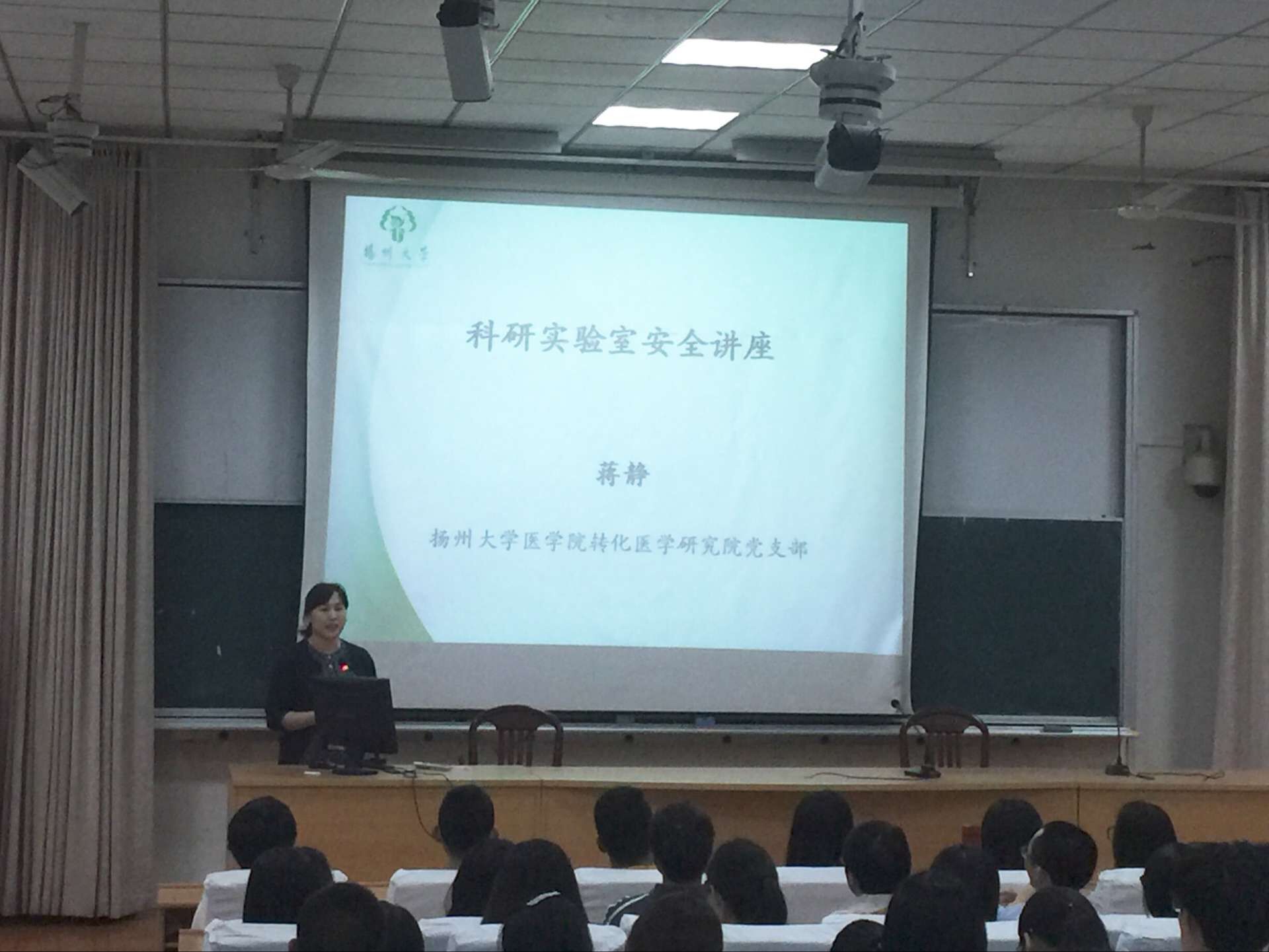 4月17号晚,转化医学研究院蒋静教授在医学院报告厅为今年申报大学生科创项目的同学进行了“科研实验室安全”讲座。蒋教授通过自己的经验总结,使同学们首先认识了实验室安全的重要性,重点介绍了实验室的基本的实验仪器,最后讲解了安全防护的基本要求,讲座后钱莉副院长为大家分享了自己的真实经历,强调了什么能做什么不能做,规矩意识和批判意识。