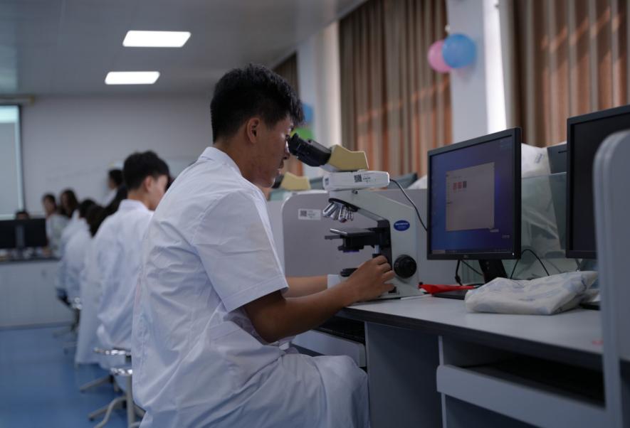 组胚教研室的岳海源老师为新生讲解了显微镜的使用,切片的观察等实验室的基本操作知识,向同学们展示了几种组织的典型切片,并简单介绍了各种组织的功能及常见疾病。