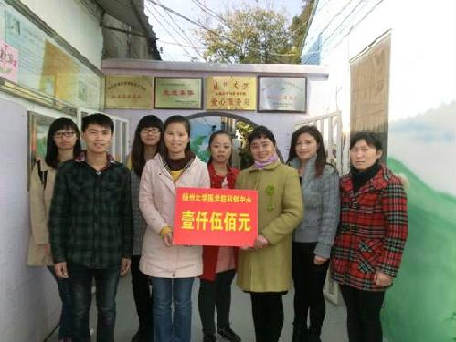 随着医学院“挑战50元“活动的落幕,11月11日上午,医学院科创中心的同学们和“挑战五十元”获奖选手代表,一同来到扬州市,将同学们在比赛中的全部所得——1500元人民币捐赠给了正在接受康复训练的孤独症儿童,为孤独症儿童的治疗和康复贡献了一份力量,并祝福他们早日康复,健康成长。负责人接受了捐赠并对同学们的无私奉献精神和大爱无疆的行为表示崇高敬意和衷心感谢。