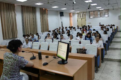 报告伊始,王炜书记介绍了朱莉校友的杰出成就与荣誉,对朱莉校友百忙之中能够回到母校,为即将毕业、踏入社会的医学院学子做职业人生的经验分享表示极大的感谢。随后,朱莉院长结合自身经历开始向同学们娓娓展开其丰富的学习生涯、职业心得叙述。以分析中国医疗事业的现状和现阶段医患矛盾为开端,朱院长选择“做好一名医生”为本次报告的主题,并对此提出了四个方面的要求——高尚的医德,精湛的医术,合作与沟通,以及艺术的服务。朱院长结合自己二十多年的从医经历,举出诸多珍贵的故事生动形象地告知了同学们,在医德方面应具仁爱、同情之心,具备责任感和奉献精神;在医术上要加强临床实践,勤奋学习,善于思考,认真读书。“只要有人类,就需要医生;只要自己努力,就能成为好医生。”报告最后,朱院长用最真诚朴实的话语激励同学们努力学习,多多历练,力争做好一名医生。