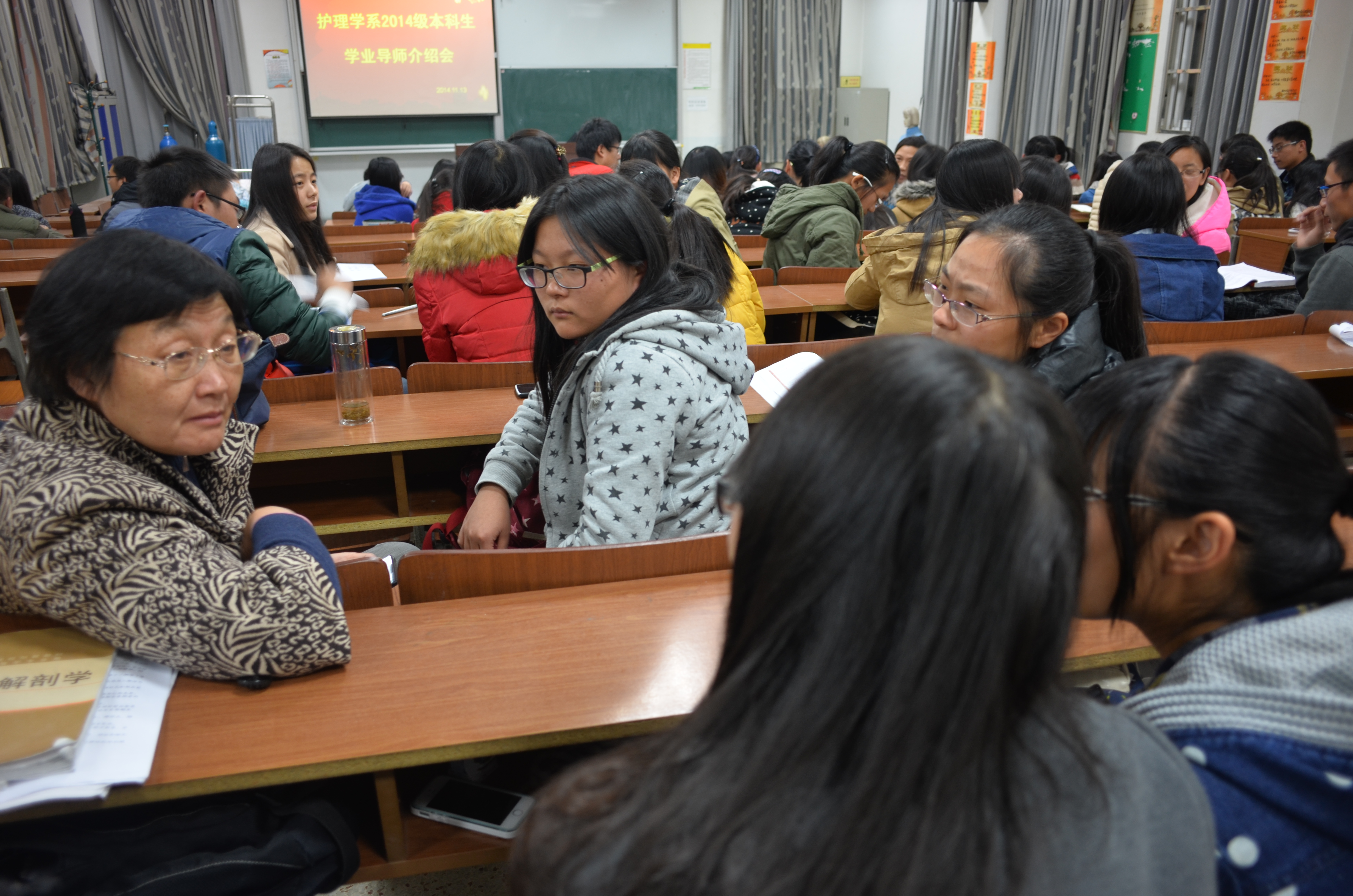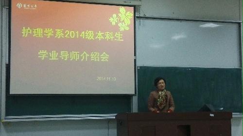 11月13日晚7点,在院教学楼101教室召开医学院护理学系学业导师介绍会。院党委副书记陈轶群、副院长郑英、护理学系全体老师和护理学系2014级全体本科生出席了此次大会,会议由院办公室主任王劲松主持。