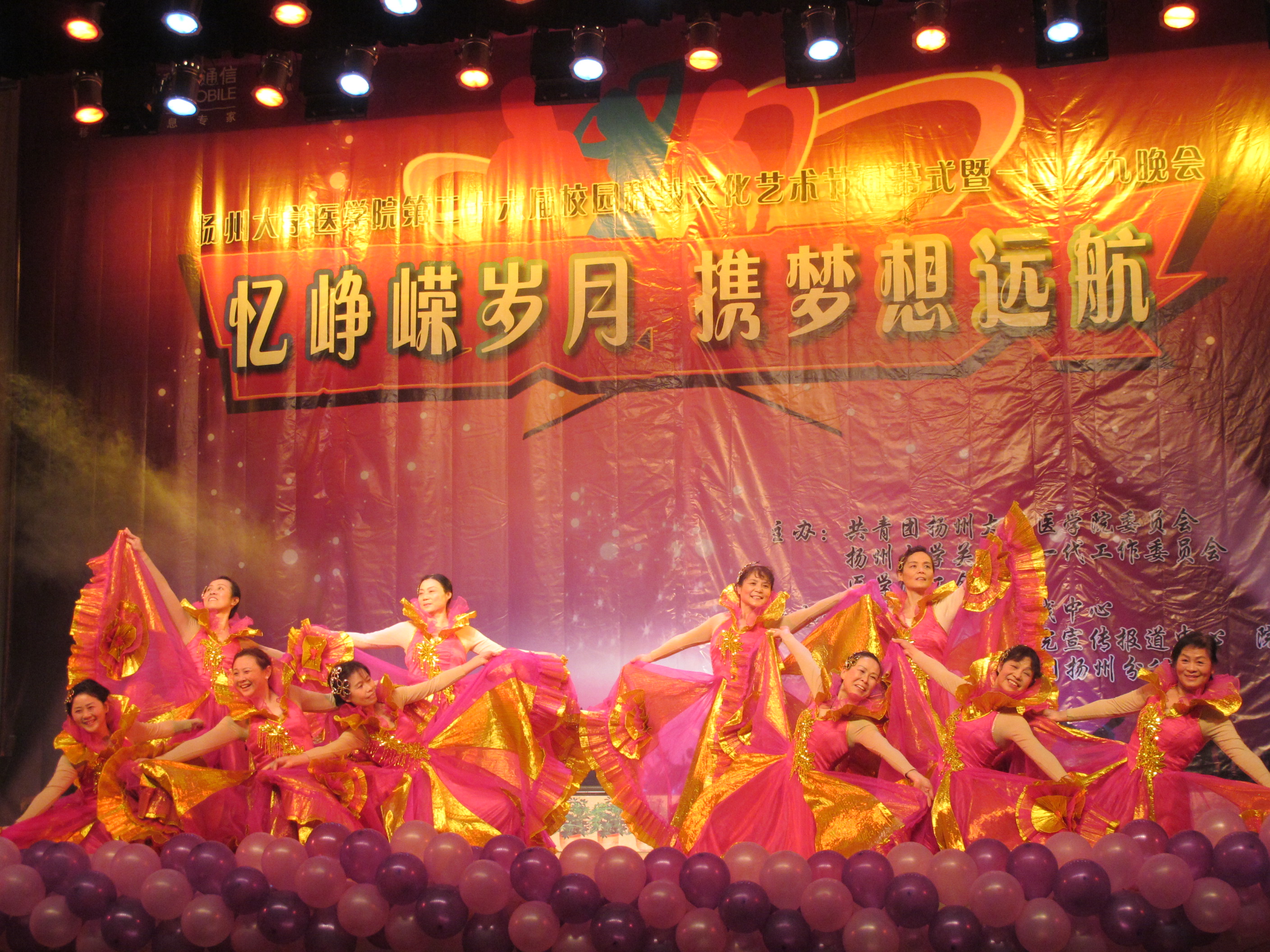 在激情澎湃的啦啦操《青春飞扬》表演中,本次晚会正式启动。在王炜书记的倾情致辞后,由医学院教职工演唱表演的《达坂城的姑娘》燃起了同学们的热情,平日里讲台上耐心教导的老师在台上动听歌唱,每个同学都惊呼呐喊,不禁鼓起了掌。扬州电视台“绿杨茶馆”的节目也被同学们搬上了舞台,一口纯正的扬州话让来自全国各地的学生以及海外留学生领略了扬州文化之璀璨。校关工委带来的舞蹈《亲吻祖国》亦展现出老师们的多才多艺与她们的爱国热情。