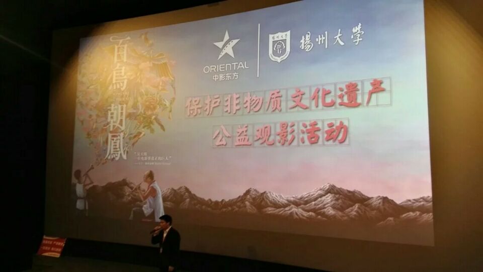 2016年5月28日,扬州大学医学院药学系1401班在御龙湾中影东方国际和扬州广电《天天旅游》栏目组的支持、赞助下,在扬州中影东方国际影城举办了《百鸟朝凤》观影活动。医学院各系、各年级的同学、老师积极报名,周六清晨便早早来到影院,现场气氛异常火爆。