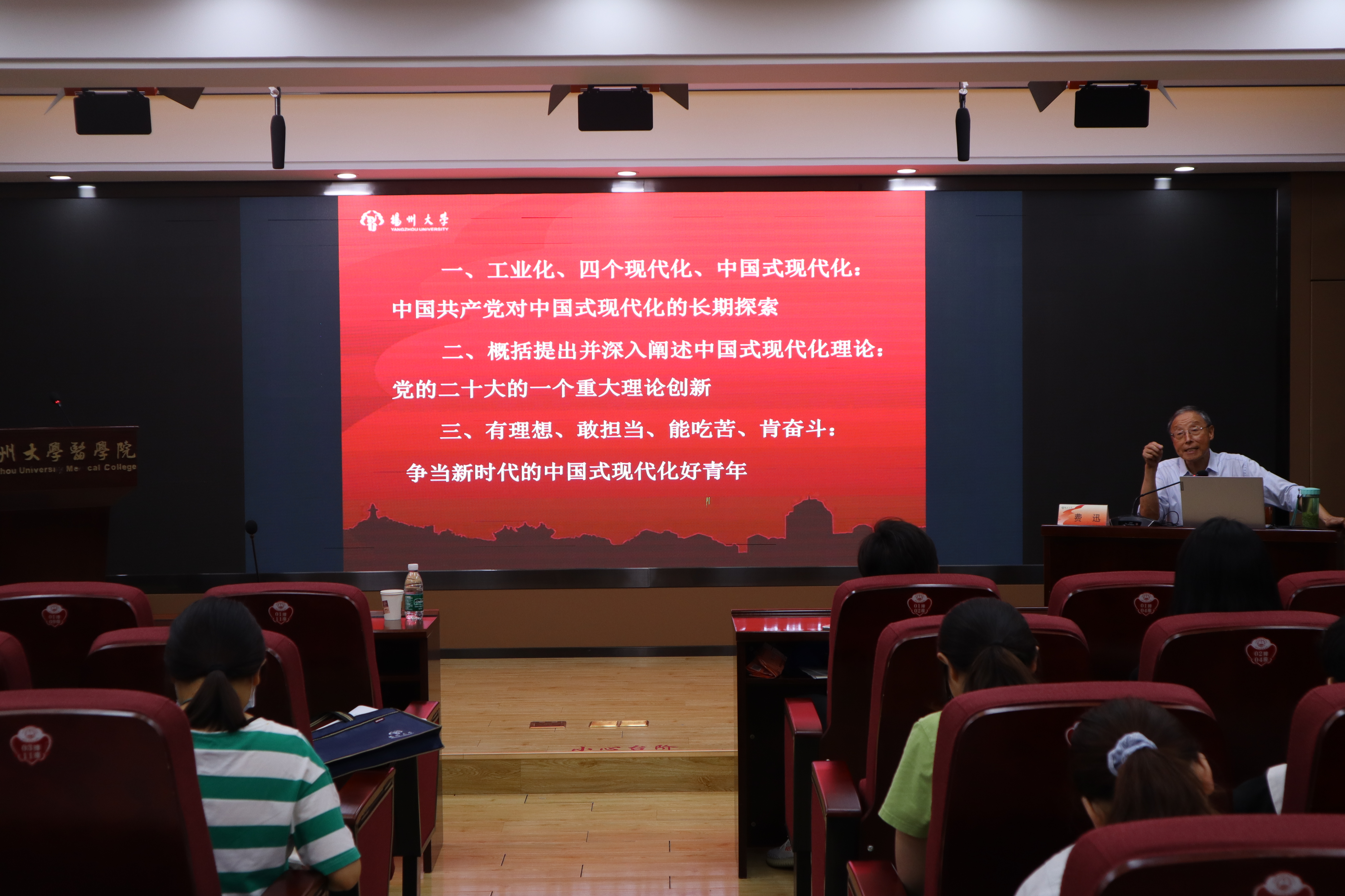 5月30日,医学院分党校发展对象培训班于5号楼401报告厅举行主题教育专题党课。讲座由马克思主义学院教授、校关工委讲师团讲师费迅老师主讲,医学院61名发展对象参加。