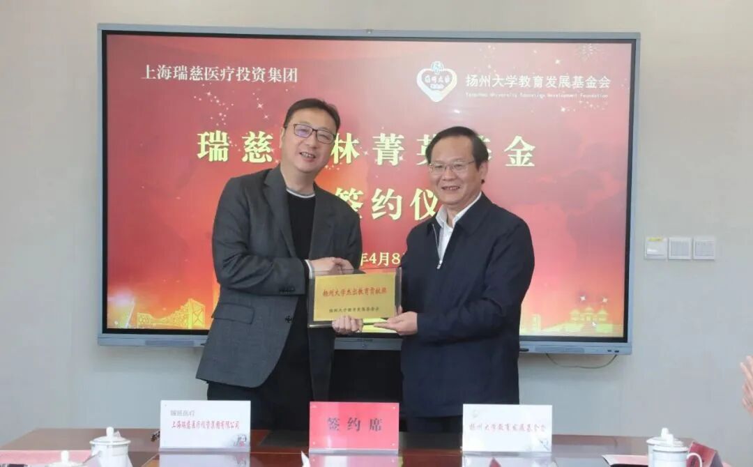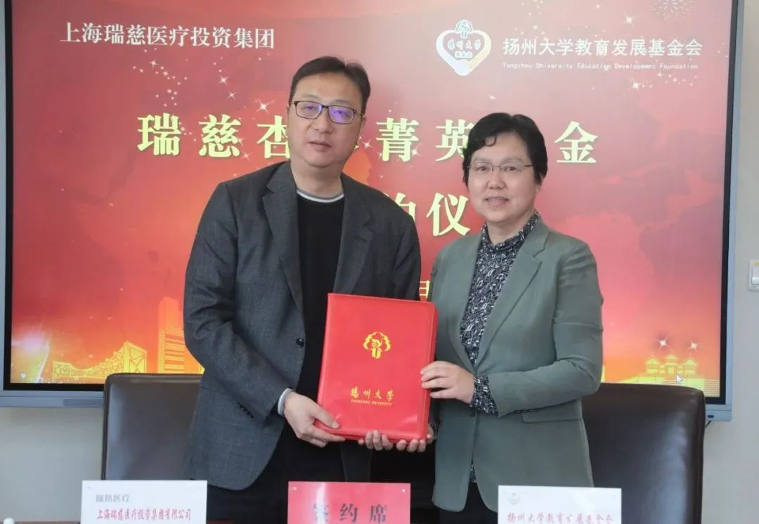 4月8日,“瑞慈杏林菁英基金”捐赠签约仪式与扬州大学——上海瑞慈医疗投资集团校企合作研讨会先后在校友馆举行。校长丁建宁,上海瑞慈医疗投资集团董事长、总裁、我院83级校友方宜新,执行副总裁、我院83级校友梅红,扬州大学教育发展基金会理事长陈耀等出席。对外联络办公室(校友会、董事会、教育基金会办公室)主任陈克勤主持仪式,副校长龚卫娟主持研讨会。