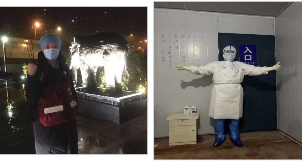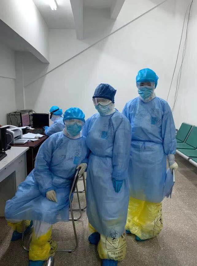 有了第一次入舱的经验,第二次显得轻松了些,但还是出现了突发状况。天气寒冷、漏雨等环境,电子医嘱传输不畅,老病人冷,新病人入住,舱内被子、热水瓶不够,修舱的工人如何进,怎样才能减少感染风险,病人需要做CT,如何安排出去(那时舱内还没有CT机,需要出舱做)个别病人私自移床,等等一连串的问题。一边叮嘱组员安抚病人,一边穿梭在各区,处理各种问题。十点多钟她出现中暑、头晕、恶心等身体不适的情况,坚持是她唯一的想法。默默地咽下口中反流出的酸水,缓缓后继续工作。15:15,洗消完出舱。
