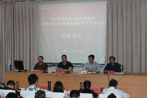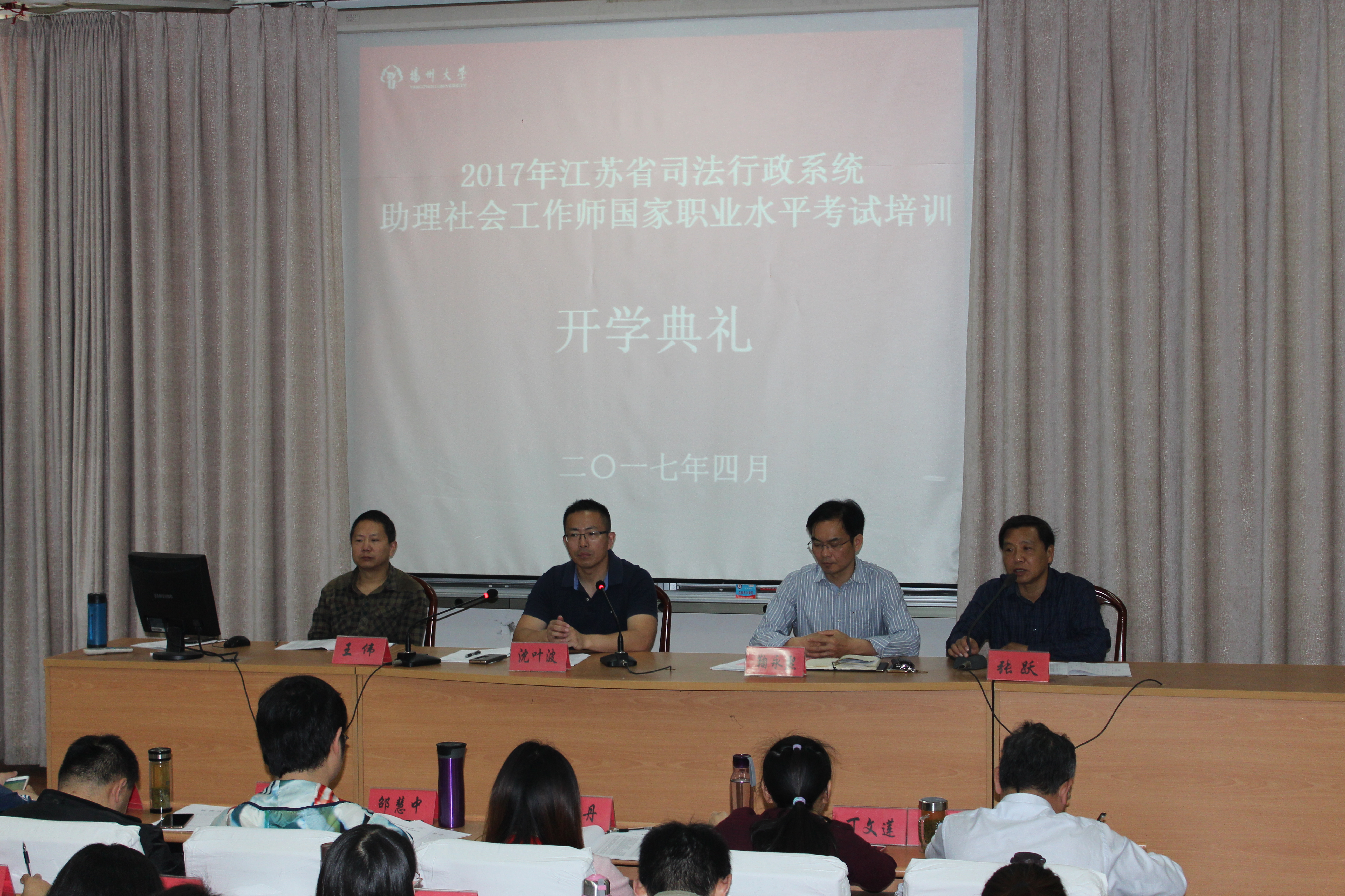 为加强我省社区工作者队伍建设,提升全省司法行政系统社区工作者队伍的专业化、职业化水平,2017年江苏省司法行政系统助理社会工作师国家职业水平考试培训班在我院举行。4月24日上午,培训班在我院报告厅正式开班,省司法厅社区矫正工作局沈叶波副局长、局办公室王伟科长来扬参加开班活动,我院鞠永熙副院长代表学院讲话。