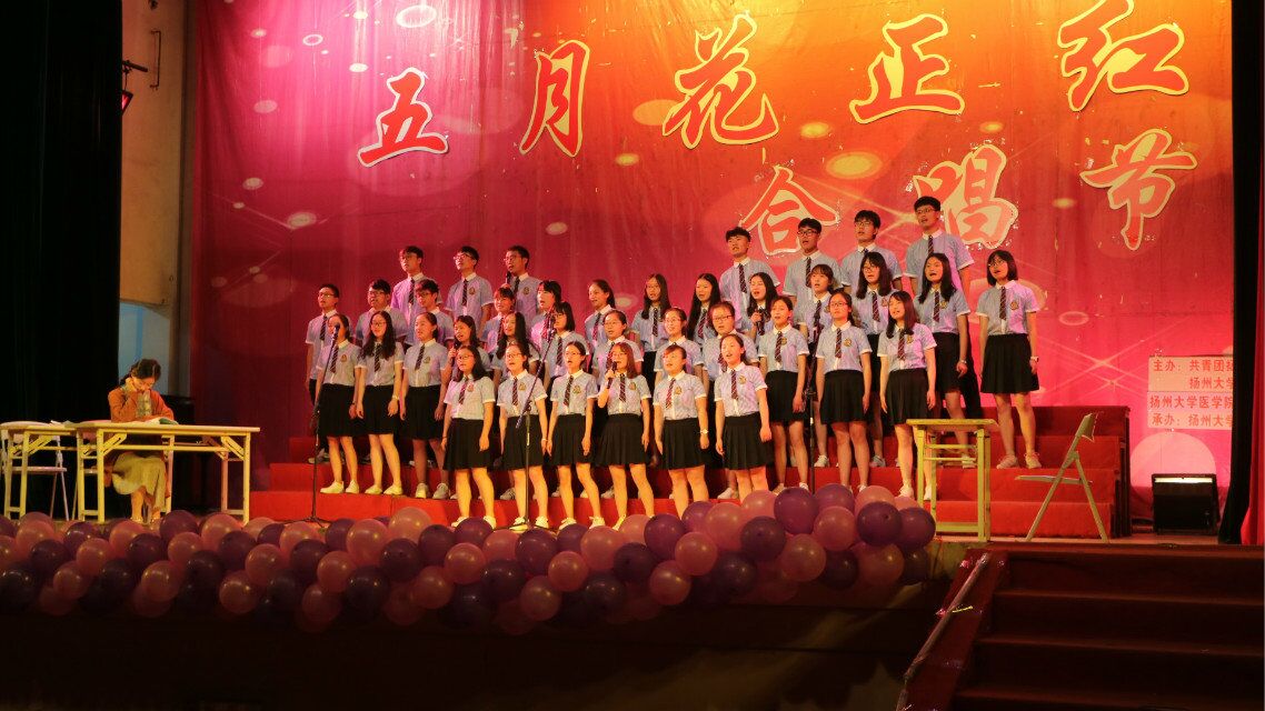2017年5月15日晚7点在文汇路大礼堂,扬州大学医学院隆重举行了第二届“五月花正红”合唱晚会。出席本次晚会的嘉宾有校团委书记徐蕾老师,校学工处副处长居学明老师,校关工委常务副主任叶蕴珊老师,校关工委办公室副主任刘方云老师,校关工委唐尧老师,院党委书记王炜老师,院党委副书记陈轶群老师,院各系老师和同学也前来观看了比赛。