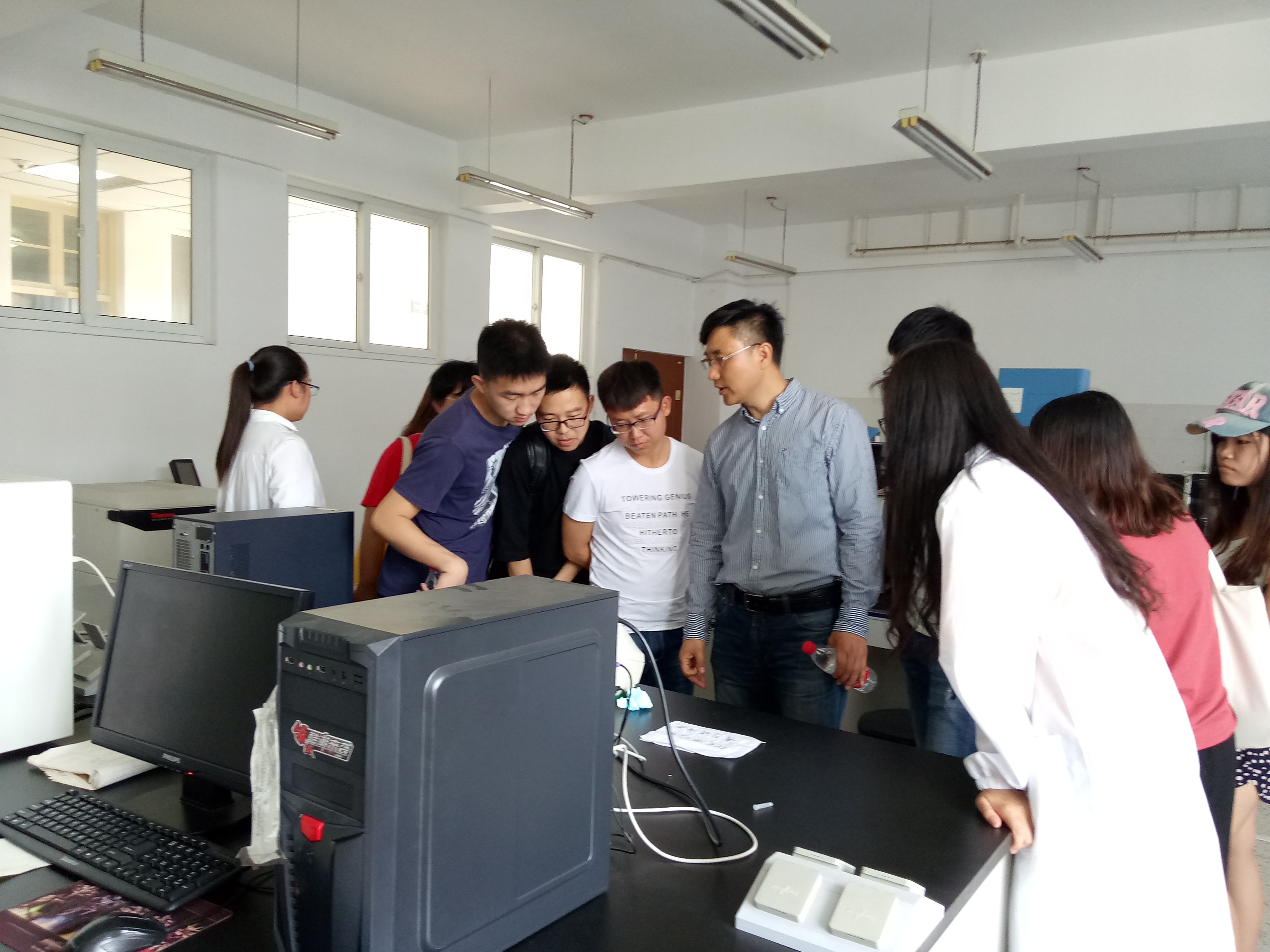 活动开始,基础医学与医学技术系程宏主任致欢迎词,与参观人员进行了面对面的交流。本次活动参观了分子医学实验室、重大疾病防治与药物研究中心等实验室,由相关的研究生和老师对实验室内的设备仪器的操作方法及临床应用做相关的讲解。参加此次活动的成员借助荧光显微镜观看了小肠的病理切片和骨髓树突状BMDC细胞,并在相关研究生和老师的指导下进行仪器操作。参观人员结合所讲内容通过亲自动手操作对临床疾病诊断的仪器设备有更进一步的认识。活动最后颁发证书并合影留念。