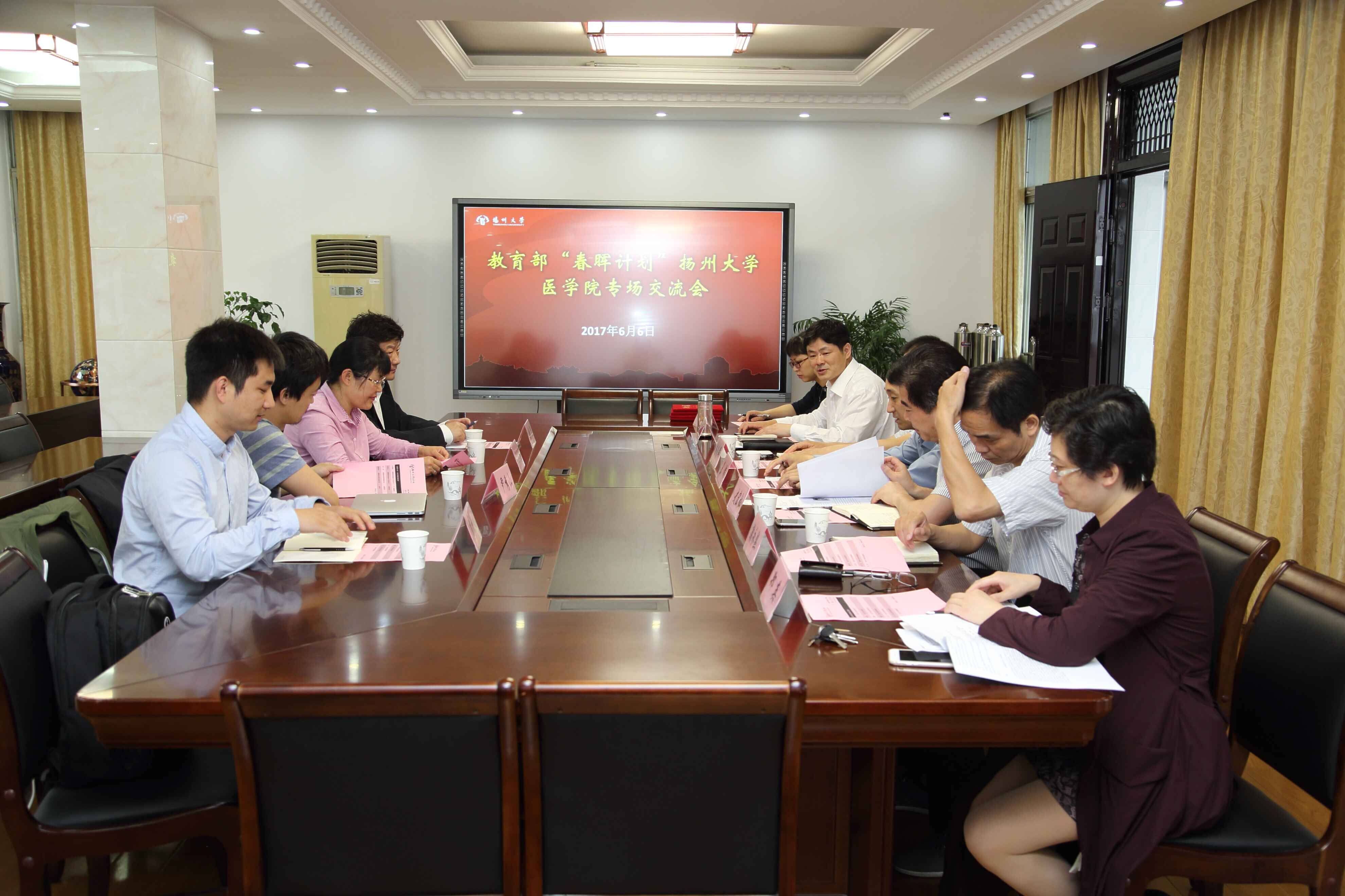 6月6日,教育部“春晖计划”扬州大学医学院专场交流会顺利举行。德国柏林国家分子医学中心教授公茂莲、尹秀山,柏林夏洛蒂医科大学教授时宇、崔欢欢一行四人访问我院,并进行学术交流。全体院领导以及部分教师代表出席交流会。