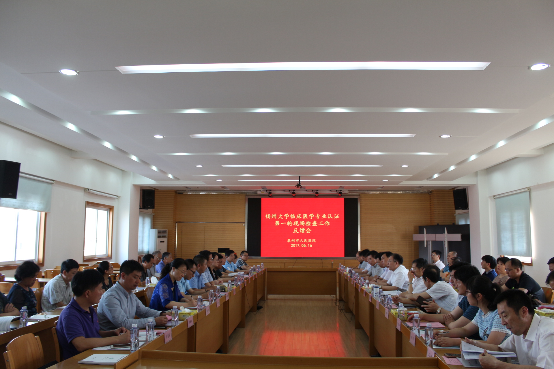 为全面了解学校临床医学专业认证工作推进的整体情况,学校于6月15日至17日分别在扬州大学附属医院、扬州大学临床医学院-苏北人民医院、扬州大学医学院附属医院-泰州市人民医院开展了为期3天的临床医学专业认证第一轮检查工作。校党委书记姚冠新、原校党委副书记、纪委书记刘延庆及党办主任林刚带领学校认证专家组成员和医学院、扬州地区的2家医院教研室主任一行27人于6月16日赴泰州市人民医院,开展第一轮检查及召开现场汇报交流会。