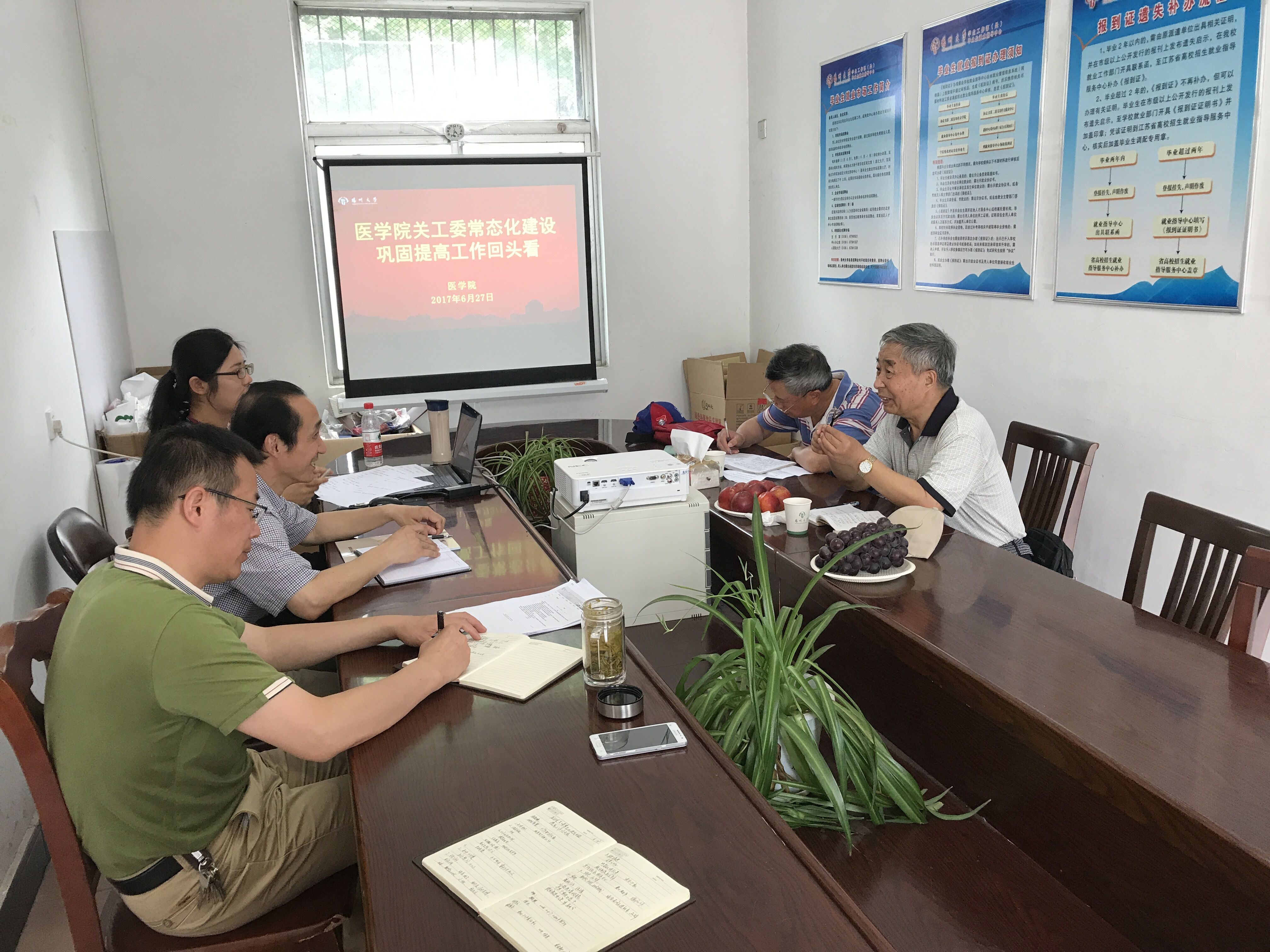 6月27日上午,校关工委副主任梁隆圣老书记、办公室刘方云主任到医学院调研检查学院关工委常态化建设巩固提高工作“回头看”情况。医学院关工委名誉主任王炜、主任陈轶群、秘书许金鑫和执行秘书李丹阳出席会议。