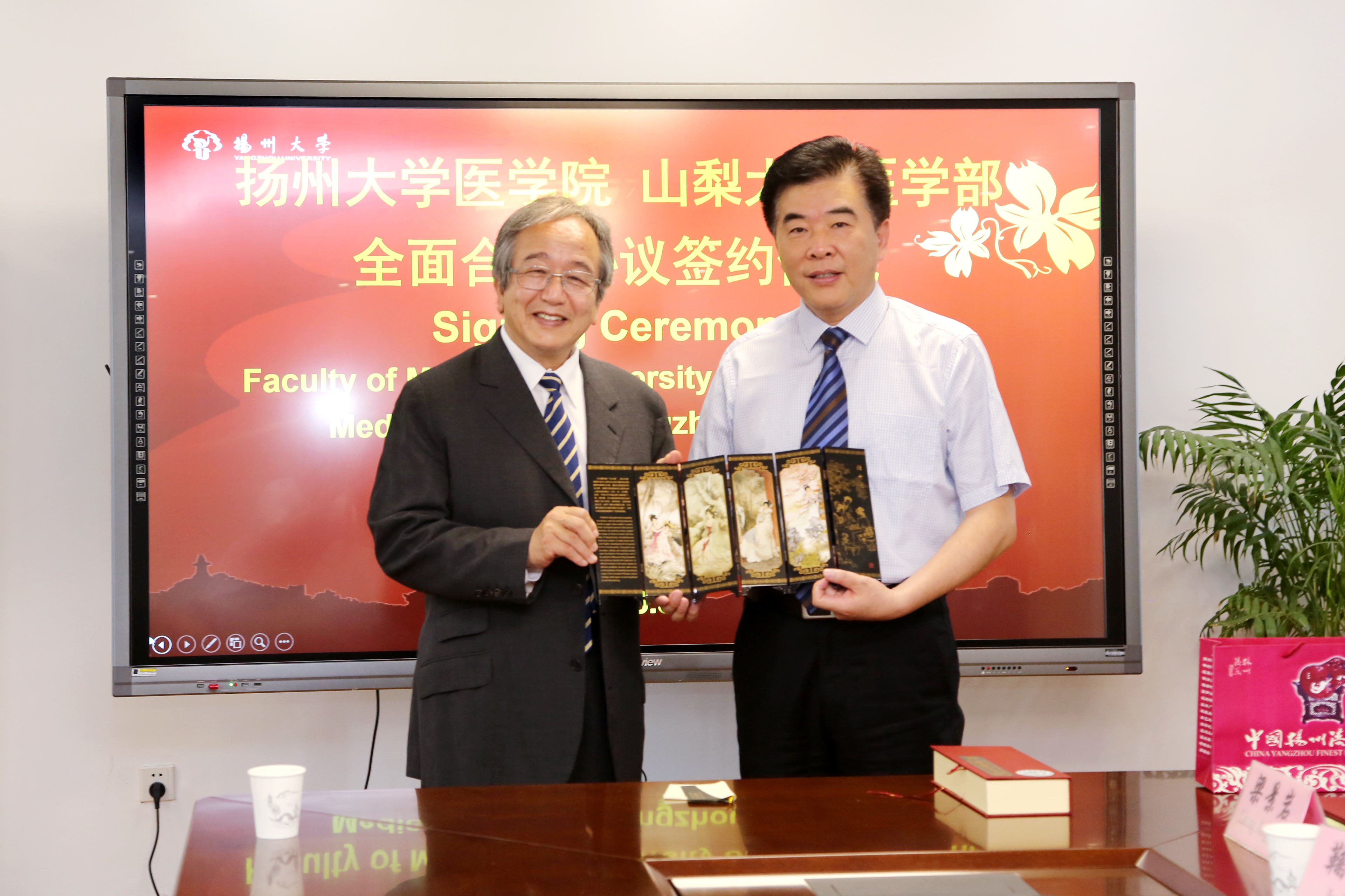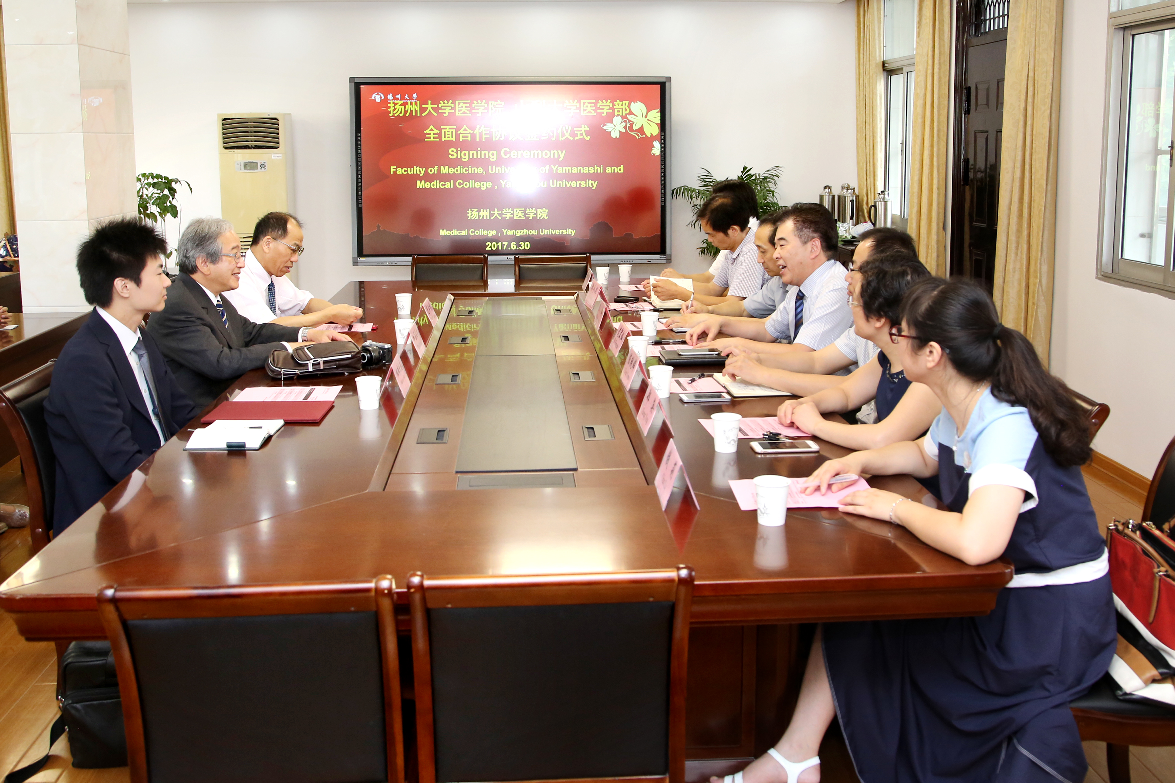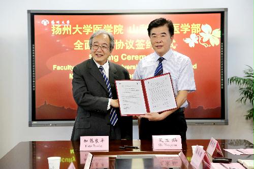 6月30日上午,日本国立山梨大学医学部留学生委员会委员长加藤良平教授一行来扬,与我院就开启国际留学生全面合作项目进行洽谈,并举行协议签约仪式。学院党委书记王炜、院长史宏灿、党委副书记陈轶群、副院长鞠永熙、郑英、王劲松出席了会议。学院师生代表参加了会议。