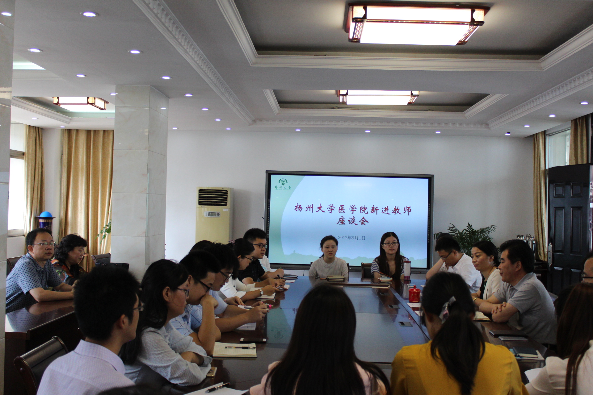 9月1日上午,学院召开新进教师座谈会,史宏灿院长主持会议,学院党委书记徐蕾、副院长郑英及相关系科领导、学院教师代表、新进教师参加了座谈会。