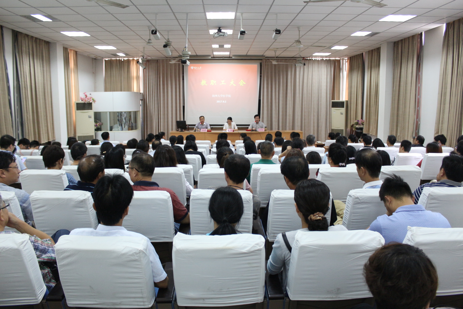 9月2日,学院在报告厅召开全院教职工大会,总结上学期工作,布置本学期工作任务及临床医学专业认证冲刺阶段的工作部署。