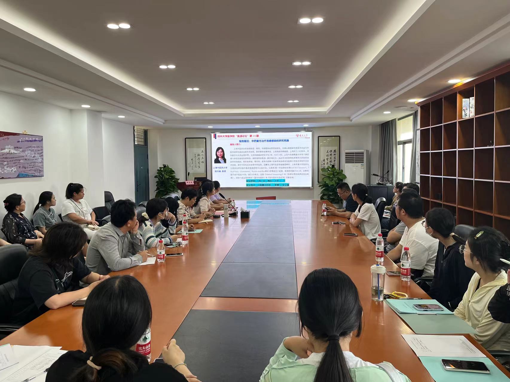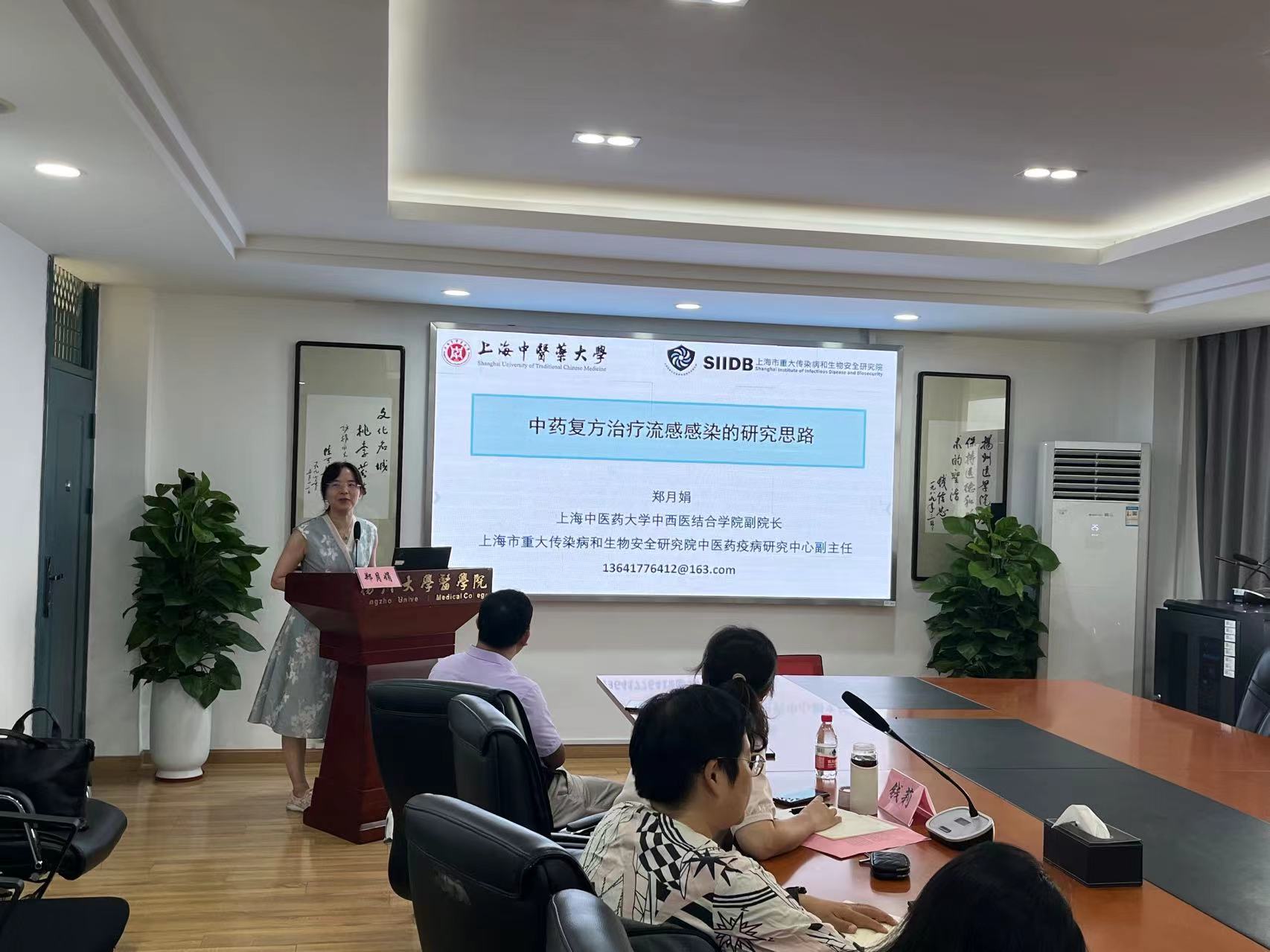 郑月娟教授首先就流感的危害、临床特点、西药治疗流感的局限及中药调控宿主免疫防治流感的优势向师生们进行了详细介绍。在此基础上结合其课题组多年从事中药复方调控宿主免疫防治流感的研究经验,给广大师生系统介绍了该团队在清肺排毒汤、肺炎清化方等方药调控免疫防治流感、新冠等领域的研究进展。最后详细介绍了中药调控肺泡中性粒细胞、单核细胞免疫功能防治流感的作用机制及其在防治流感相关继发性感染方面的临床优势。郑教授的报告为指导我校师生开展抗病毒中药课题的研究及相关创新药物的研发提供了新思路和新方法。