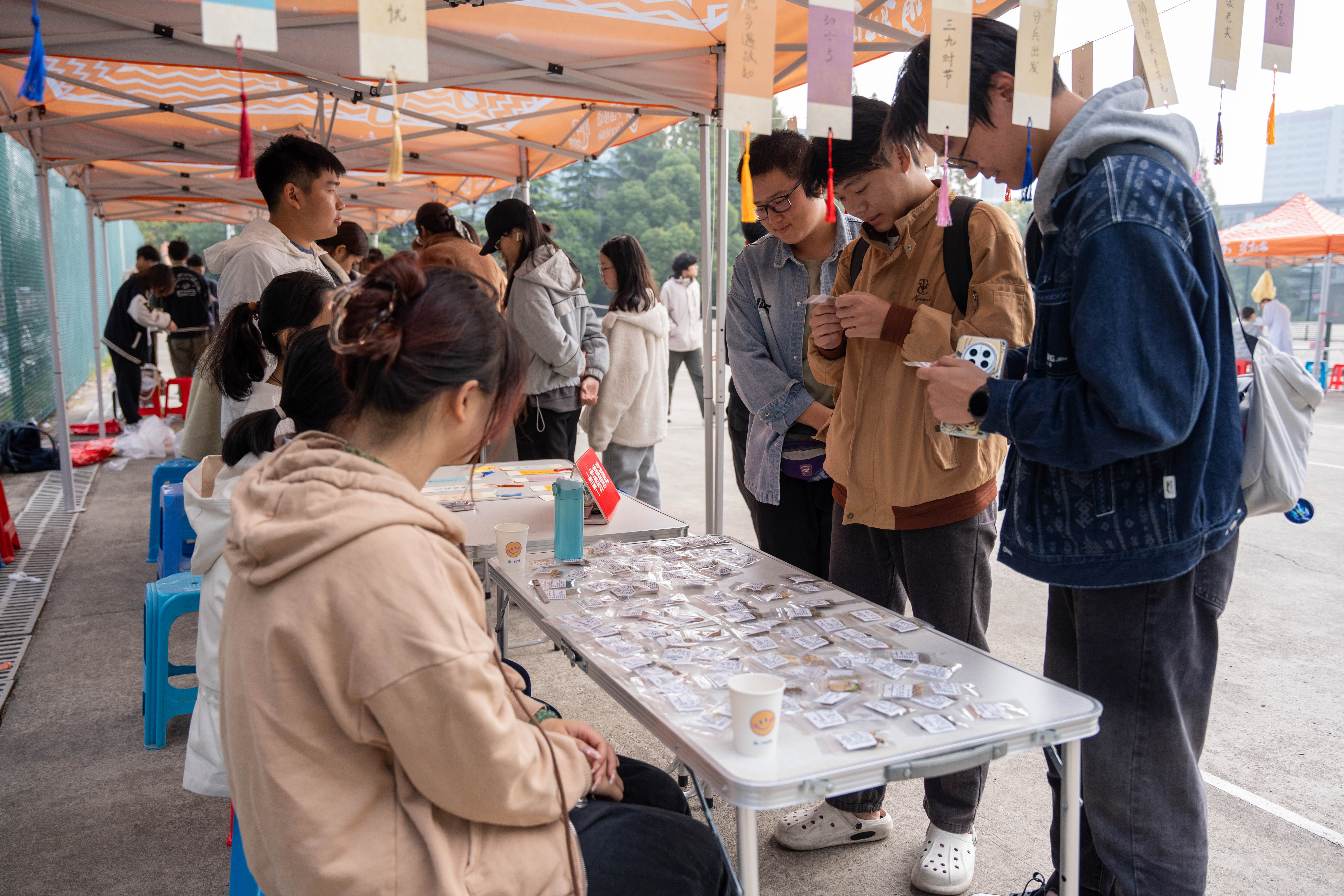 活动现场,教工党支部的党员教师、学生们与“国医少年”社团的志愿者们共同为师生们提供了丰富的中医药文化 体验。在“中草药文化学习区”,党员学生通过生动的讲解和互动,带领同学们认识了多种中草药,了解其功效与应用,传承了千年中医智慧。通过“看、闻、摸、称”的方式,师生们不仅学习了中草药的辨识技巧,更感受到了中医药文化的博大精深。