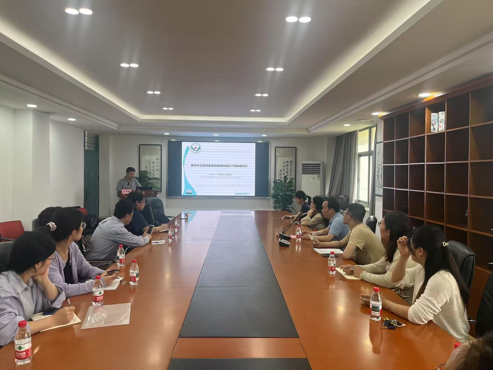 王研究员首先对蜱虫的发现史、蜱虫携带的病毒类型、蜱传布尼亚病毒的流行病学特征及其对人的致病特性进行了详细介绍;然后在此基础上结合其课题组多年从事蜱传布尼亚病毒的感染致病机制及干预策略的原创性研究成果,给广大师生详细介绍了布尼亚病毒逃避宿主抗病毒干扰素系统及宿主蛋白MOV10、MxA抑制布尼亚病毒复制的最新研究进展,最后对当前防治蜱传布尼亚病毒感染的干预策略和展望进行了全面总结。王研究员的报告为指导我校师生开展突发性病毒性疾病的基础研究及应用转化提供了新思路和新方法。