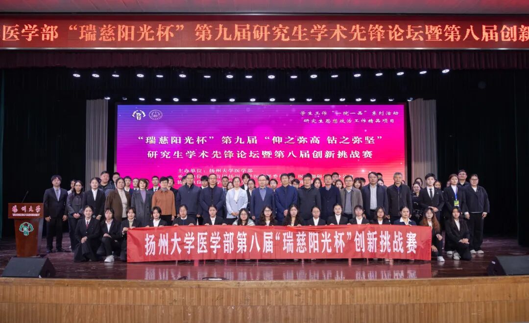 12月6日上午,扬州大学医学部在荷花池校区大学生活动中心二楼多功能厅、三楼小剧场举行“瑞慈阳光杯”第九届研究生学术先锋论坛暨第八届创新挑战赛。校党委常委、副校长韩杰,校党委常委、宣传部部长张信华,校教务处处长钱莉,校党委研究生工作部部长郑刚,校招生就业处处长陈轶群,校党委保卫部部长、保卫处处长毛连军,校团委书记毕亮,校研究生院副院长汪小会,校党委学生工作部副部长、学生工作处副处长周超,医学部党委书记吕红梅、常务副主任梁景岩、党委副书记王志健,基础医学院·公共卫生学院党委书记廖善光、院长陆凤,中医药学院党委书记高静及导师代表、研究生办公室全体老师、团委(学工办)全体辅导员和24级、25级本研学生出席活动。