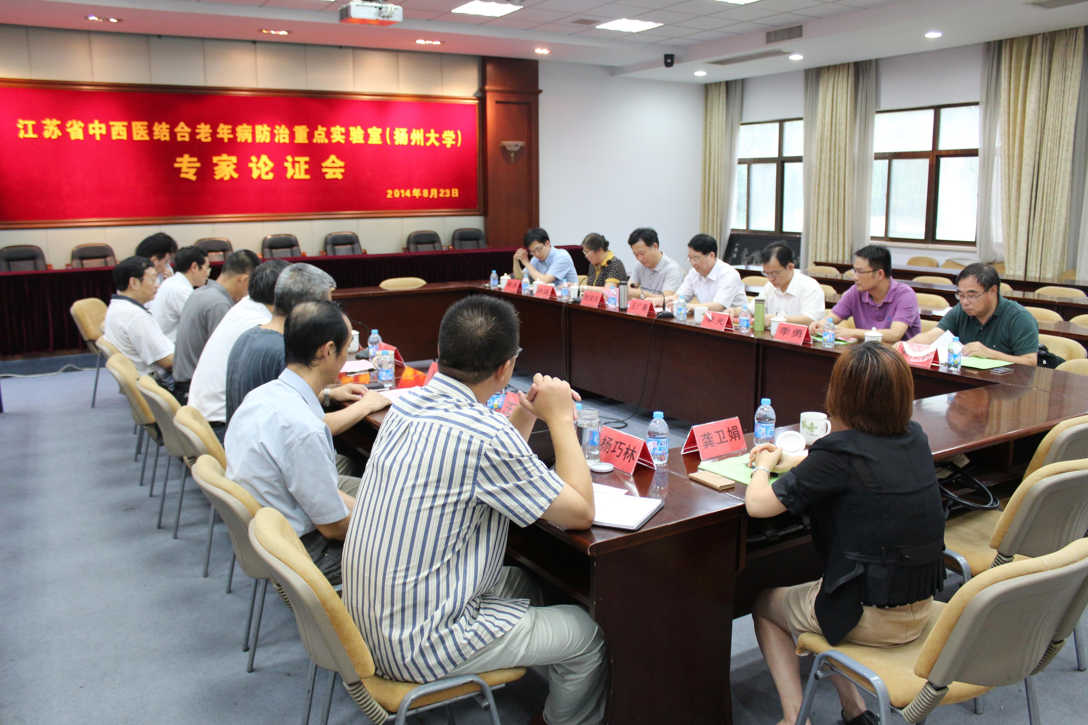 近日,“江苏省中西医结合老年病防治重点实验室”现场考察论证会在校行政楼一楼报告厅召开。江苏省教育厅科技与产业处副处长丁同玉出席论证会。论证专家组由中国药科大学王广基院士、上海中医药大学季光教授、南京中医药大学狄留庆教授、南京医科大学季勇教授、南京大学徐运教授、南京中医药大学朱方石教授、南京医科大学周洪教授组成。我校党委副书记刘延庆,副校长刘祖汉,科学技术处处长吴圣龙、副处长杨巧林,医学院党委书记王炜,重点实验室主任史宏灿及实验室主要学术骨干参加会议。