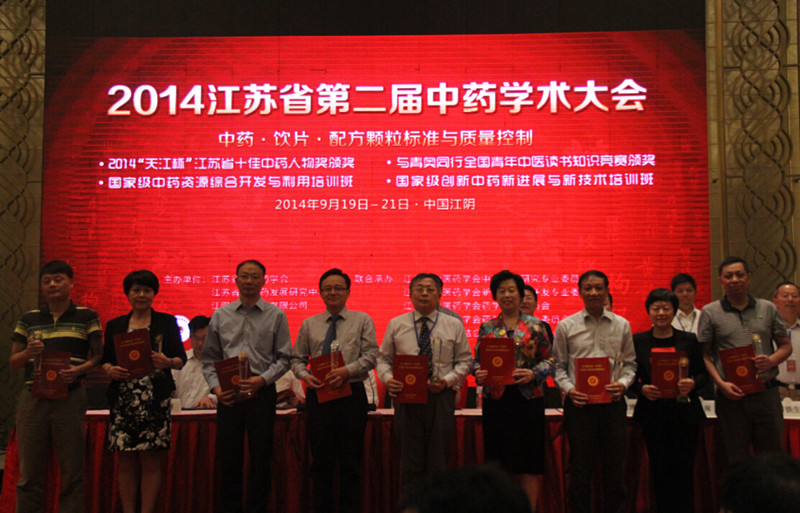 颁奖仪式由由江苏省中医药学会副会长兼秘书长、江苏省中医药发展研究中心主任黄亚博主持。江苏省中医药学会会长、江苏省卫生和计划生育委员会副主任、江苏省中医药局局长陈亦江作重要讲话,江苏省中医药学会名誉会长吴坤平宣读“关于颁发2014‘天江杯’江苏省十佳中药人物奖的决定”。