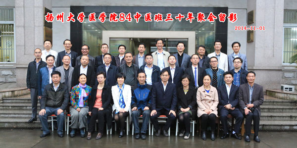 2014年11月1-2日,医学院84级中医学本科入学30周年返校联谊活动在扬州举行。校党委副书记、纪委书记刘延庆教授,医学院党委书记王炜、院长史宏灿、副院长鞠永熙、调研员朱华芳,原任课老师、老领导代表王树槐、纪开东等出席有关活动,37名校友返校。