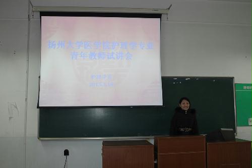 1月19日上午,护理学系在108教室举办新教师试讲活动,护理学系全体老师到会。护理学系新教师张菁、万小娟以及广陵学院护理专业新教师韩婷将在下学期承担《护理教育学》和《社区护理学》课程的教学工作,为了保障课堂授课质量、提高教学水平,护理学系组织教师对她们进行教学辅导,并要求在正式讲授课程前进行试讲。三位试讲的教师精心准备了讲课内容,教态自然大方、讲授清晰易懂,获得大家好评。试讲过程中,各位具有丰富教学经验的教师不但对三位新教师从教案设计、课前准备、课堂掌控、互动交流、教学手段、PPT制作等方面进行了详细点评和指导,还模拟了电脑故障、软件不兼容等突发情况,大大提高了新教师课堂教学能力。通过试讲活动,各位新教师仔细梳理了自身不足并将认真改进,为新学期上好第一课做好充分准备。