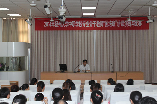 5月14日,扬州大学中职护理、药剂骨干教师国家级培训班(2014年计划,2015年3月-5月培训)举行讲课演练与比赛活动在医学院举行。该班的49名学员参加活动。