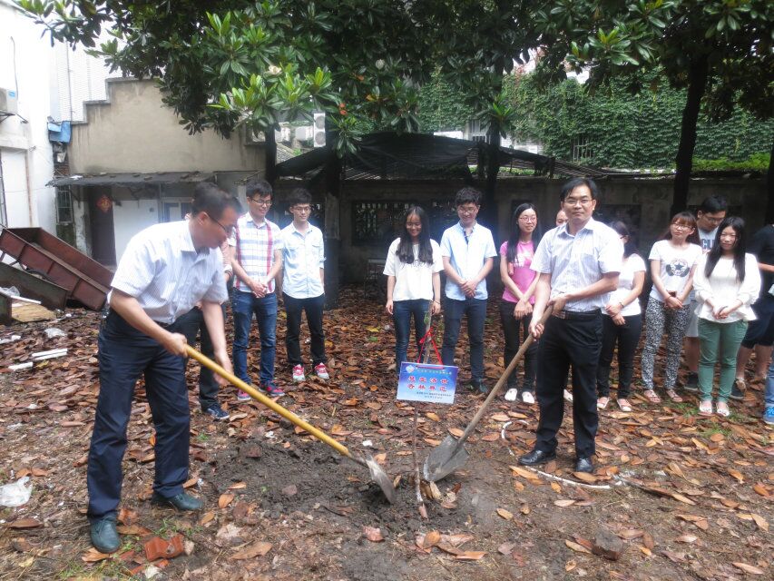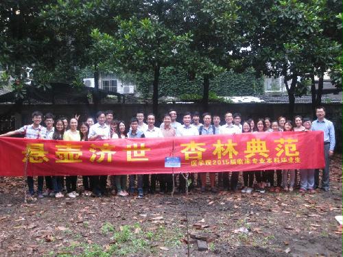 毕业离校季,感恩回馈时。6月24日下午五点,由医学院承办的“悬壶济世,杏林典范”植树纪念活动在院教学楼前进行。院党委书记王炜、院长史宏灿、党委副书记陈轶群、副院长鞠永熙、院综合办公室主任王劲松、团委书记王芬等院领导老师参加了本次活动。我院2015届毕业生们捐赠6棵杏树苗,感恩母院情,以壮杏林医风,留下绿色的青春足迹。