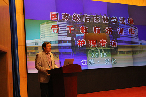 10月25日,医学院在兴化市第一人民医院举办国家级临床教学基地骨干教师培训班(护理专场),扬州大学医学院护理系刘永兵主任主持开幕式, 扬州大学党委副书记刘延庆、扬州大学医学院院长史宏灿、兴化市副市长邓志方、兴化市人民医院院长张彤出席了会议开幕式。