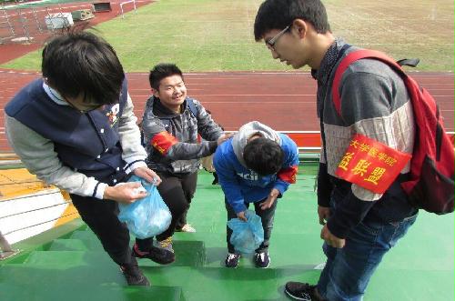 此外,在本届运动会上,还有另一道风景线。他们也是这次运动会不可缺少的力量,用心服务、贴心关怀。他们或穿着白大褂,为身体疲惫刚刚从赛场上竞技归来的运动健儿送去医疗扶助,他们便是医学院的大学生“微疗”互助中心;他们或随手携带塑料袋,在看台上穿梭,捡起一片片垃圾,还观众一片净土,他们便是医学院公益联盟。他们,都是在用无私的精神做着看似很不起眼的事,但所谓“奉献无小事”,给伤痛处贴上一片纱布、捡起一块掉落的纸屑、拾起一个遗留的水瓶,都是赛场上动人的风景。