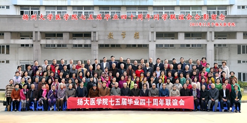 2015年11月14日,医学院1975届校友毕业40周年返校联谊活动在扬州举行,该届120名校友返校。医学院党委书记王炜、副院长鞠永熙,周锦秀、成志芳、王树槐、唐尧等教师代表参加活动。
