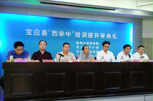 举办“西学中”培训班的目的是使西医临床医师能系统掌握基本的中医理论和中医诊疗方法,能够应用中西医结合技能为广大人民提供中医药健康服务。宝应县 “西学中”培训班是继我院与高邮市卫计委成功举办“西学中”培训班后的又一期,本期培训班学习时间为一年半,培训采用三方面结合的形式,即面授培训与个人自学相结合、理论与操作相结合、课堂教学与典型病例分析、互动答疑相结合。培训结束,成绩合格,由我院颁发经扬州市卫计委认可的扬州大学培训结业证书。