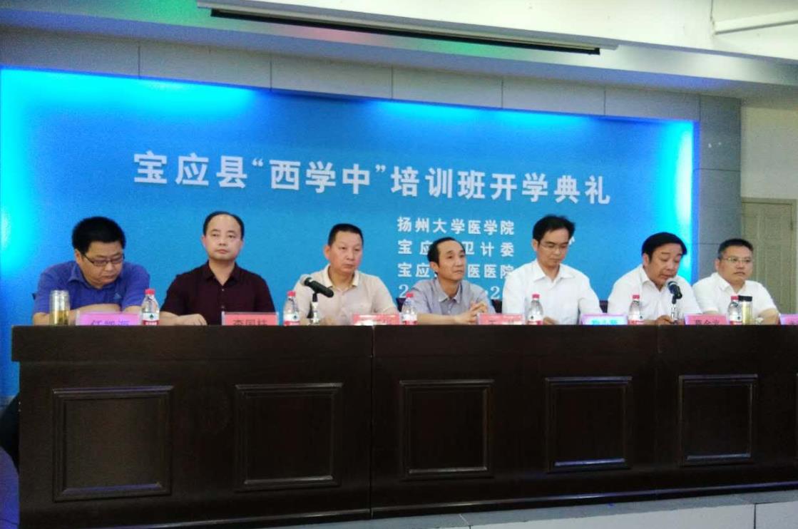 2016年6月29日下午,我院与宝应县卫计委联合举办的宝应县 “西学中”培训班开班仪式在宝应县中医院举行,医学院党委王炜书记、鞠永熙副院长、宝应县卫计委沈新华副主任、宝应县中医院李国柱院长、高邮市卫计委中医科葛余兆科长、宝应县卫计委中医科任凯源科长及宝应县中医院领导班子成员等出席仪式。开班仪式由宝应县中医院许景亮副院长主持,开办仪式结束后,医学院中西医结合学系龙爱华博士上了第一堂课,来自宝应县有关医院的85名学员参加学习。
